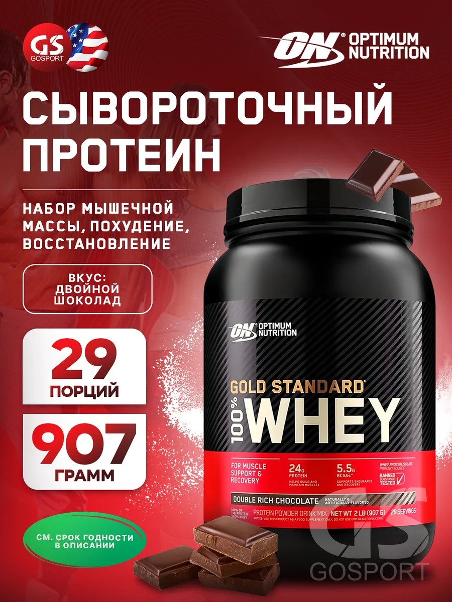 Годен до 10.03.2027. Сывороточный протеин 100% Whey Gold Standard 907 г, Двойной шоколад. 100% Whey Gold Standard ON (Optimum Nutrition) – это чистый сывороточный белок, который идеален в период повышенных физических нагрузок. Продукт содержит 100% чистый концентрат, изолят и гидролизат сывороточного протеина, которые быстро усваиваются. Протеин – это основной строительный материал для нашего организма. Он играет важнейшую роль в росте мышц и восстановлении организма после тренировок. Именно поэтому сывороточный протеин является неотъемлемым компонентом спортивного питания для профессиональных спортсменов и людей, занимающихся спортом. Сывороточный протеин – это идеальный протеиновый коктейль для набора мышечной массы и роста мышц. Сывороточный протеин от Optimum Nutrition содержит все необходимые аминокислоты, которые способствуют быстрому восстановлению мышц и стимулируют их рост. Продукт подходит как мужчинам, так и женщинам, которые занимаются спортом и стремятся к достижению результатов. Протеин ON является отличным дополнением к профессиональному спортивному питанию для тех, кто хочет улучшить свою физическую форму, увеличить мышечную массу. Этот продукт также идеален для тех, кто хочет похудеть. Сывороточный протеин поможет вам контролировать аппетит благодаря высокому содержанию белка, который создает чувство сытости. Также он ускоряет обмен веществ, способствуя потере лишнего жира и сохранению сухой мышечной массы. Эта добавка восстанавливает организм после интенсивных тренировок, способствует росту мышц и повышает выносливость. Сывороточный протеин - это не просто напиток, а инновационный продукт для достижения ваших спортивных целей. Рекомендации по применению пищевой добавки: смешать один мерный совочек (30г) протеина с 200-250мл воды или обезжиренного молока. Примечание: у товара может быть новый дизайн.