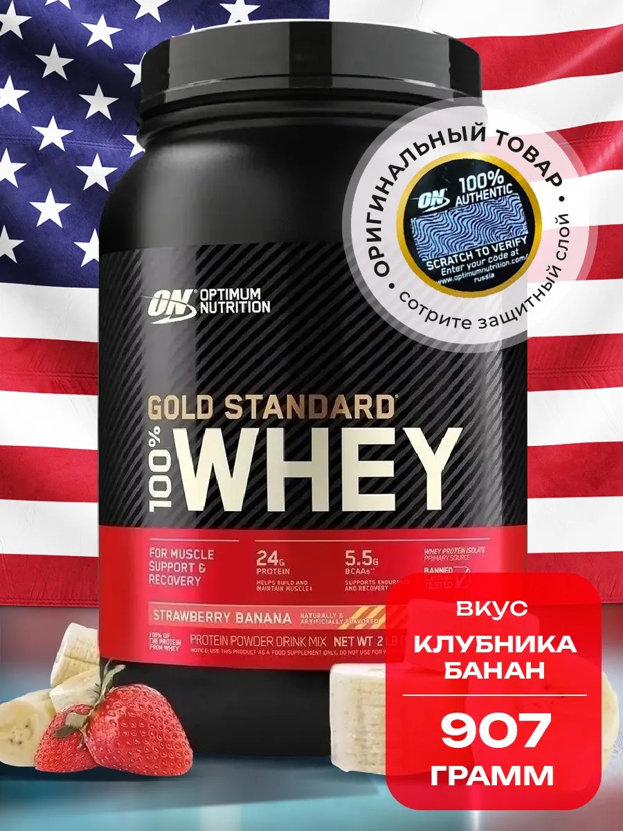 Протеин Gold Standard 100% Whey, 907 г - Клубника-банан
