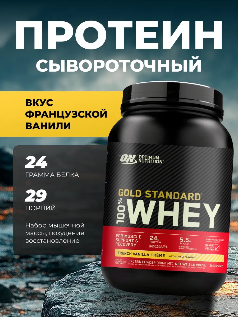 | Комплектация | Optimum Nutrition 100% Whey Gold Standard 907г (французская ваниль) |