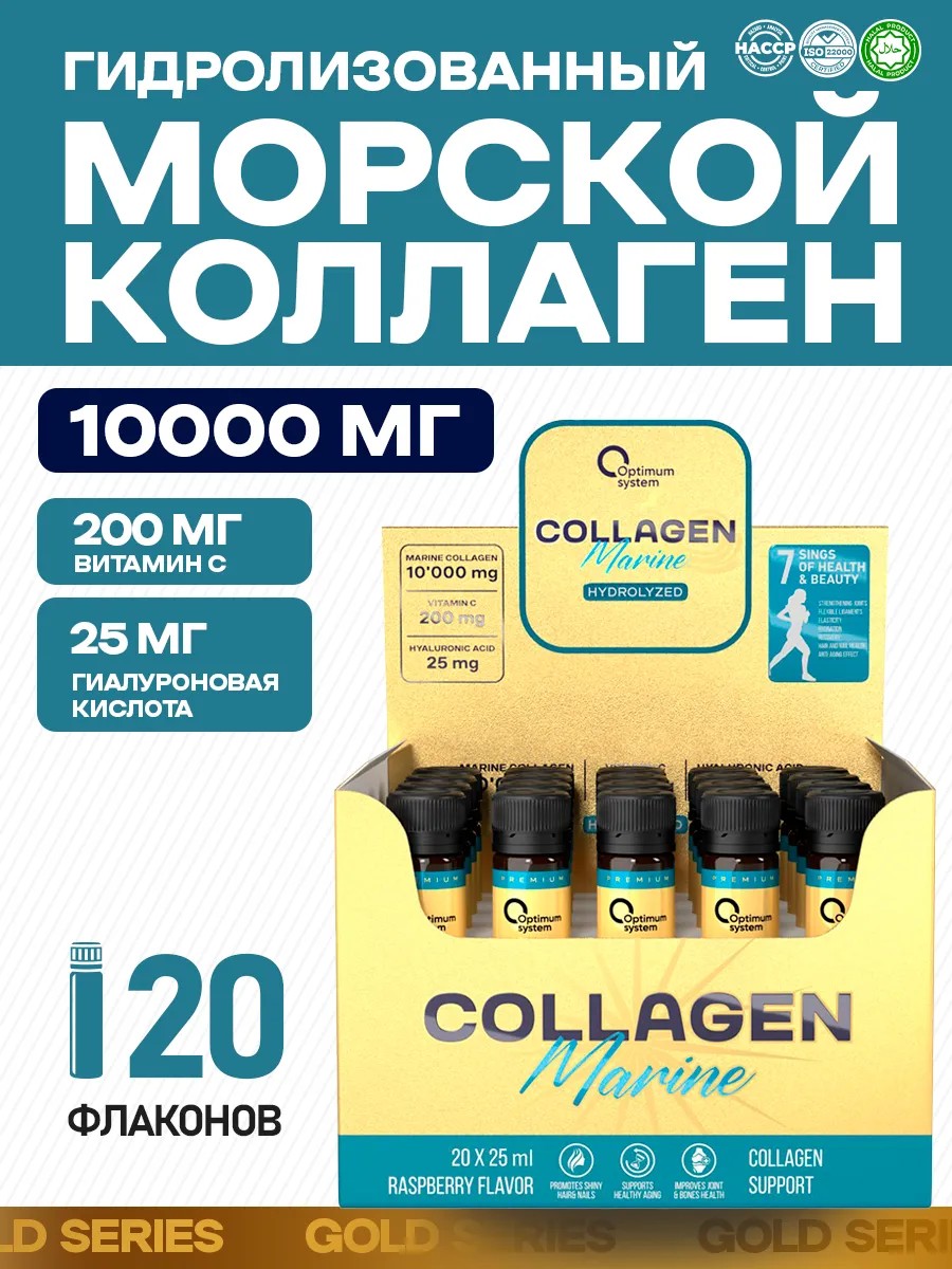 | Комплектация | Optimum System жидкий морской коллаген 20 шт флаконов по 25 мл |
