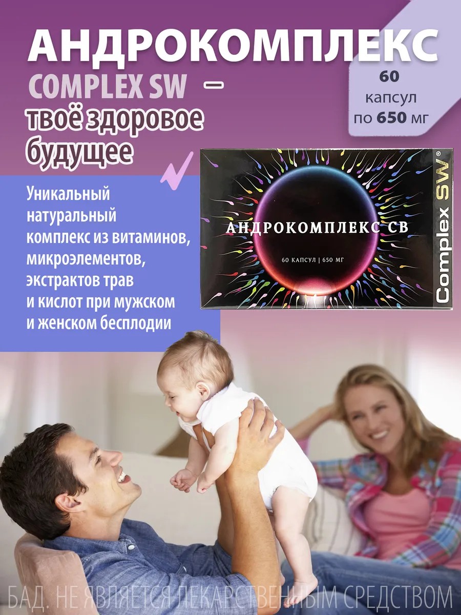Андрокомплекс - уникальный натуральный комплекс из витаминов, микроэлементов, экстрактов трав и аминокислот для нормализации работы репродуктивной системы при подготовке к зачатию, мужском и женском бесплодии.