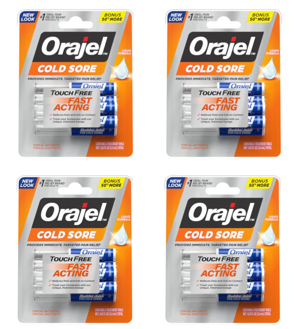 Orajel Cold Sore Touch-Free Fast Acting Liquid Formula Relieves Pain and Itch on Contact 6 Count (Pack of 4)