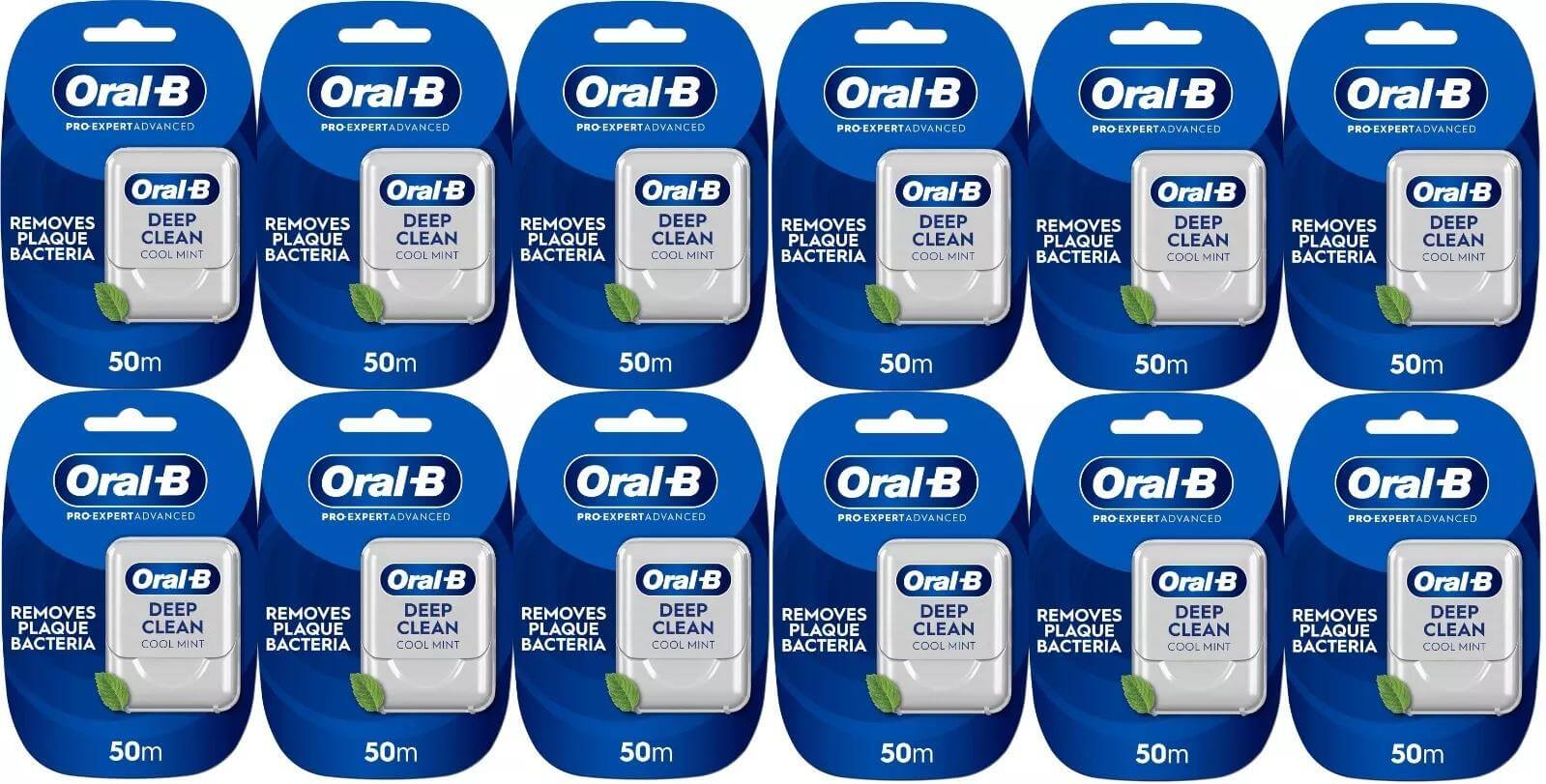Oral-B Pro-Expert Advanced Deep Clean Cool Mint Waxed Floss Tape 50m - PAck Of 12
