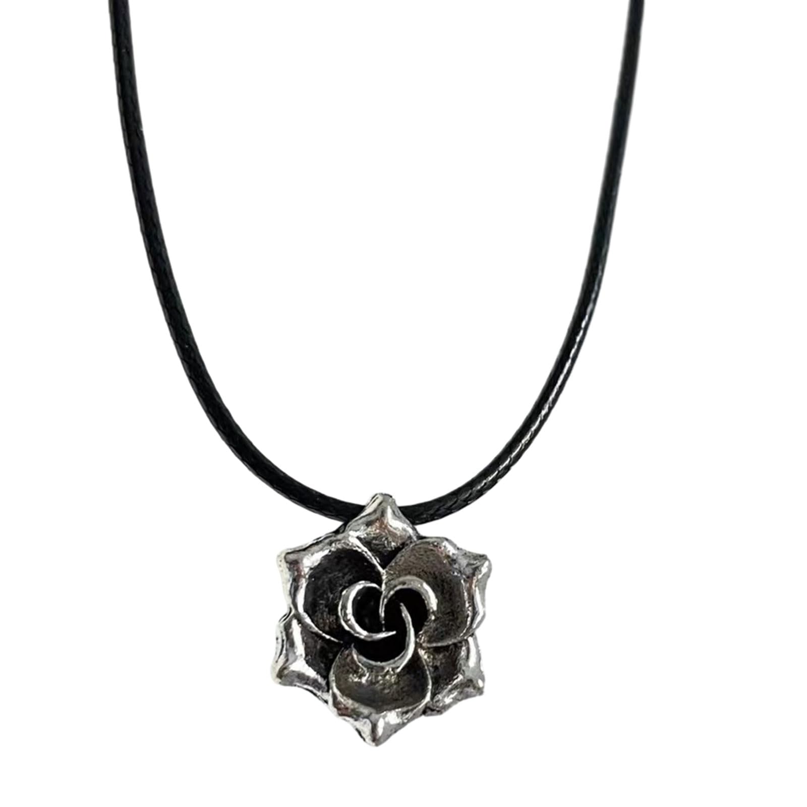 OralGos Halskette mit unregelmäßigem Rosenanhänger, bunte Blumenform, schwarzes Seil, Schlüsselbeinkette, Ornament, Schwarz, Lederkordel-Legierung