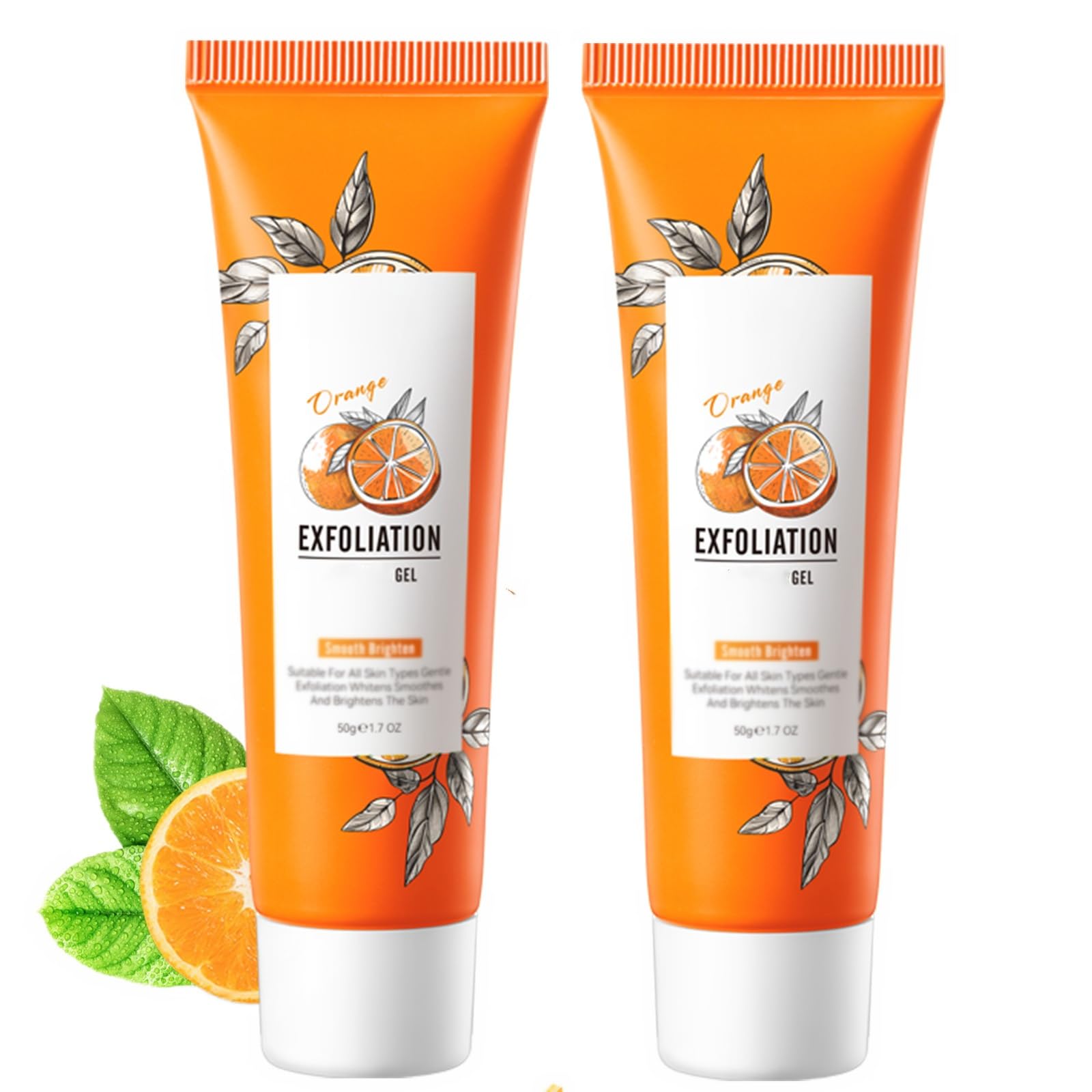 Orange Exfoliating Gel Vitamin C Peeling Gel for Face & Body Gentle Face Scrub Deep Cleansing & Moisturizing Exfoliator Smooths Skin Pore Minimizing for All Skin Types (2PCS)