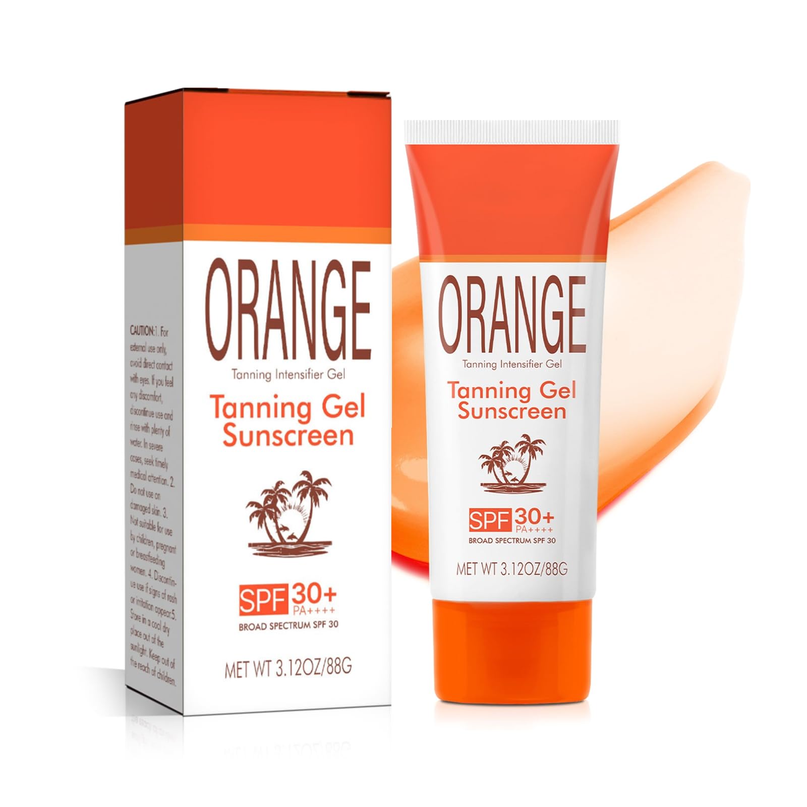 Orange Tanning Gel Sunscreen SPF 30 Mineral-Oil Free Hydrating Balm-to-Oil Formula Water-Resistant Streak-Free Fake Tan Travel Size (1pc)