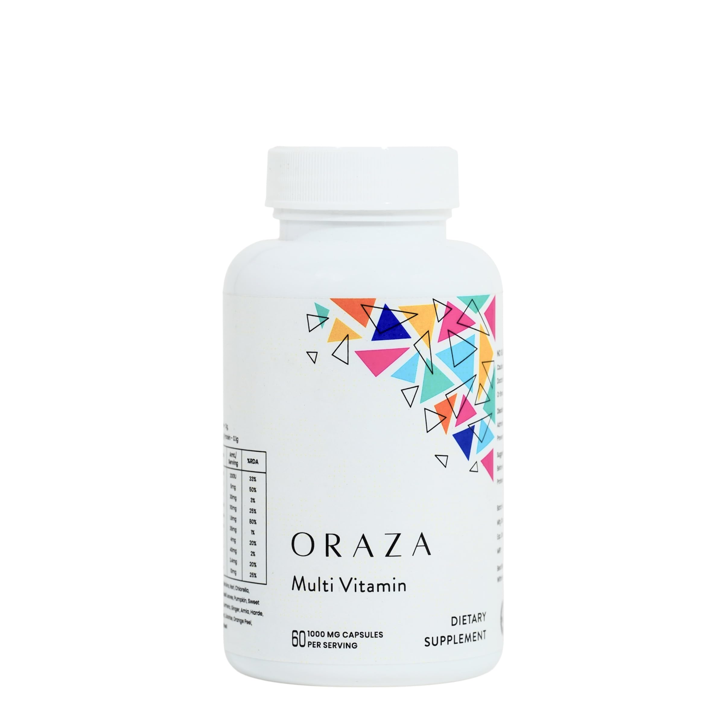 ORAZA Basic Nutrients Multivitamin Supplement for Adults Essential Vitamins A B Complex C D3 E Zinc & Minerals Immune & Energy Support-Supports Immunity Metabolism & Vitality 60 Capsules