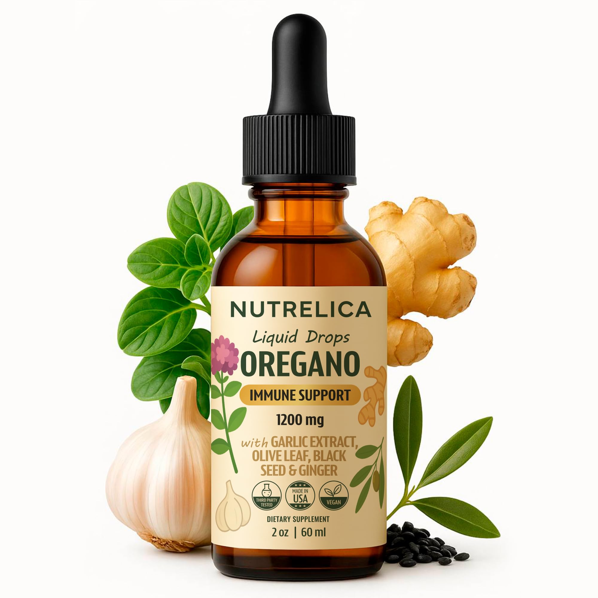 Quality You Can Trust – Made in the USA in an FDA-registered facility, with every batch third-party tested for purity, potency consistency. Pure, Plant-Based Wellness – No Sugar. No artificial additives. Just Vegan, Non-GMO, Gluten-Free ingredients crafted for daily immune support. Alcohol-Free Liquid Drops – A clean, plant-based format designed for better absorption and utilization than standard capsules or powders. With Garlic, Olive Leaf Ginger – Complementary botanicals that promote natural resilience, digestive balance, and antioxidant protection. 1200mg Herbal Immune Support Supplement – A synergistic blend of Oregano Oil, Garlic Extract, Olive Leaf, Black Seed Oil Ginger to help support immune defense and everyday wellness.