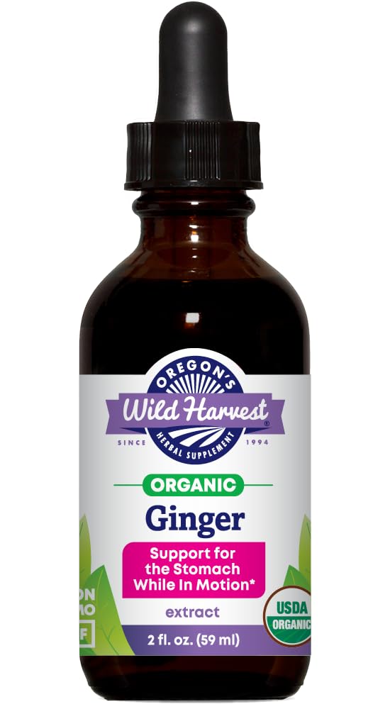 Oregon's Wild Harvest Ginger Organic Extract 2oz Alcohol Liquid Herbal Supplement USDA Organic Non-GMO Vegan Gluten-Free Digestion & Motion Support