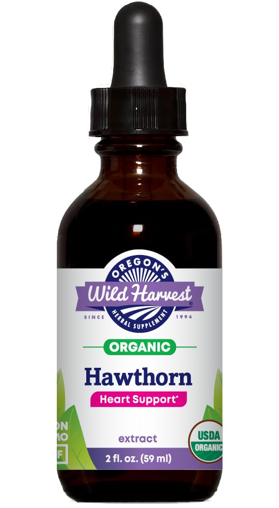 Oregon's Wild Harvest Hawthorn Organic Extract 2oz Alcohol Herbal Supplement Heart Support Tincture USDA Organic Non-GMO Gluten-Free Made in USA