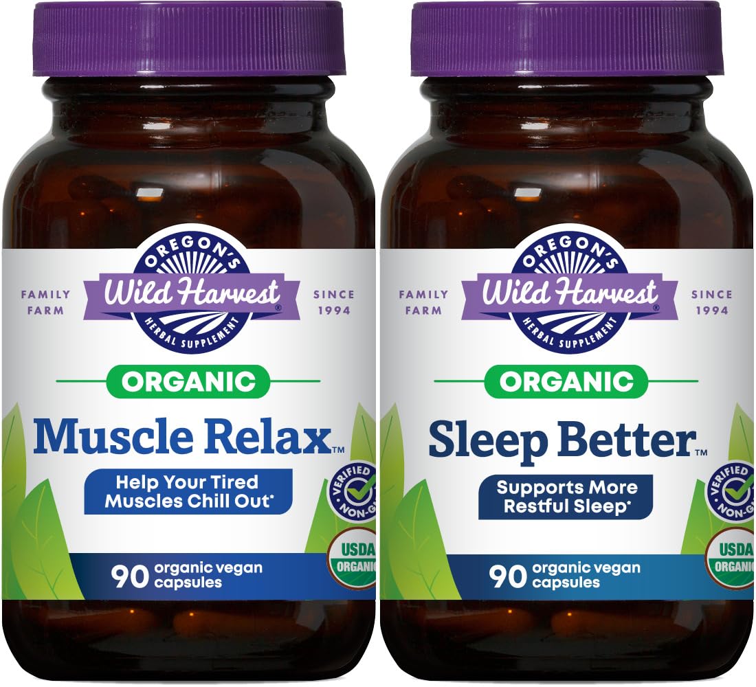 Relax your body and mind with this organic herbal bundle from Oregon's Wild Harvest. Featuring Muscle Relax and Sleep Better capsules, this duo helps soothe tension and promote deep, restful sleep—naturally.
