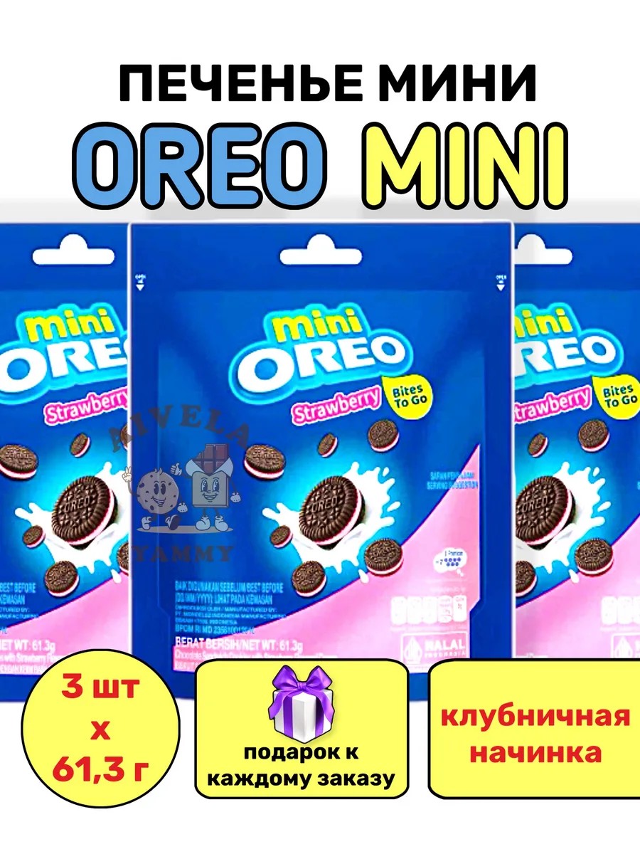 Печенье Oreo Mini Strawberry, Chocolate, Original в ассортименте. Это удобные мини-печеньки Oreo, сделанные в Индонезии. Благодаря своему небольшому размеру, они отлично подходят для декорирования кондитерских изделий.