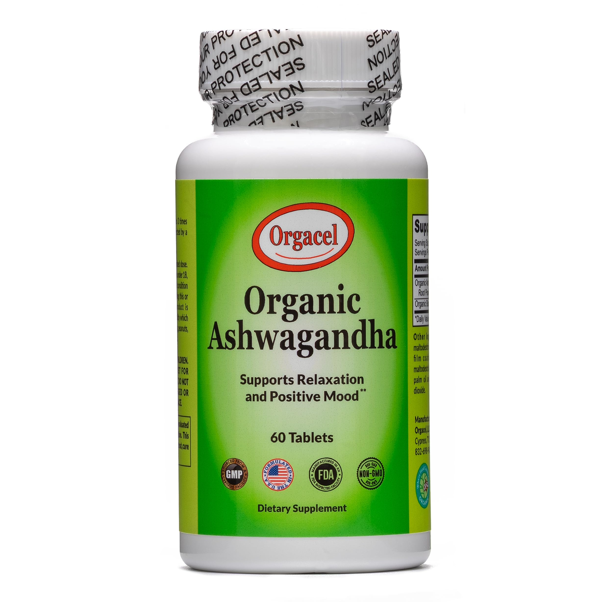 Orgacel Organic Ashwagandha 675 Mg 60 Day Supply Black Pepper Extract Stress Relief Positive Mood Better Concentration Increased Energy Promotes Better Sleep. 60 Vegan Non-GMO Tablets