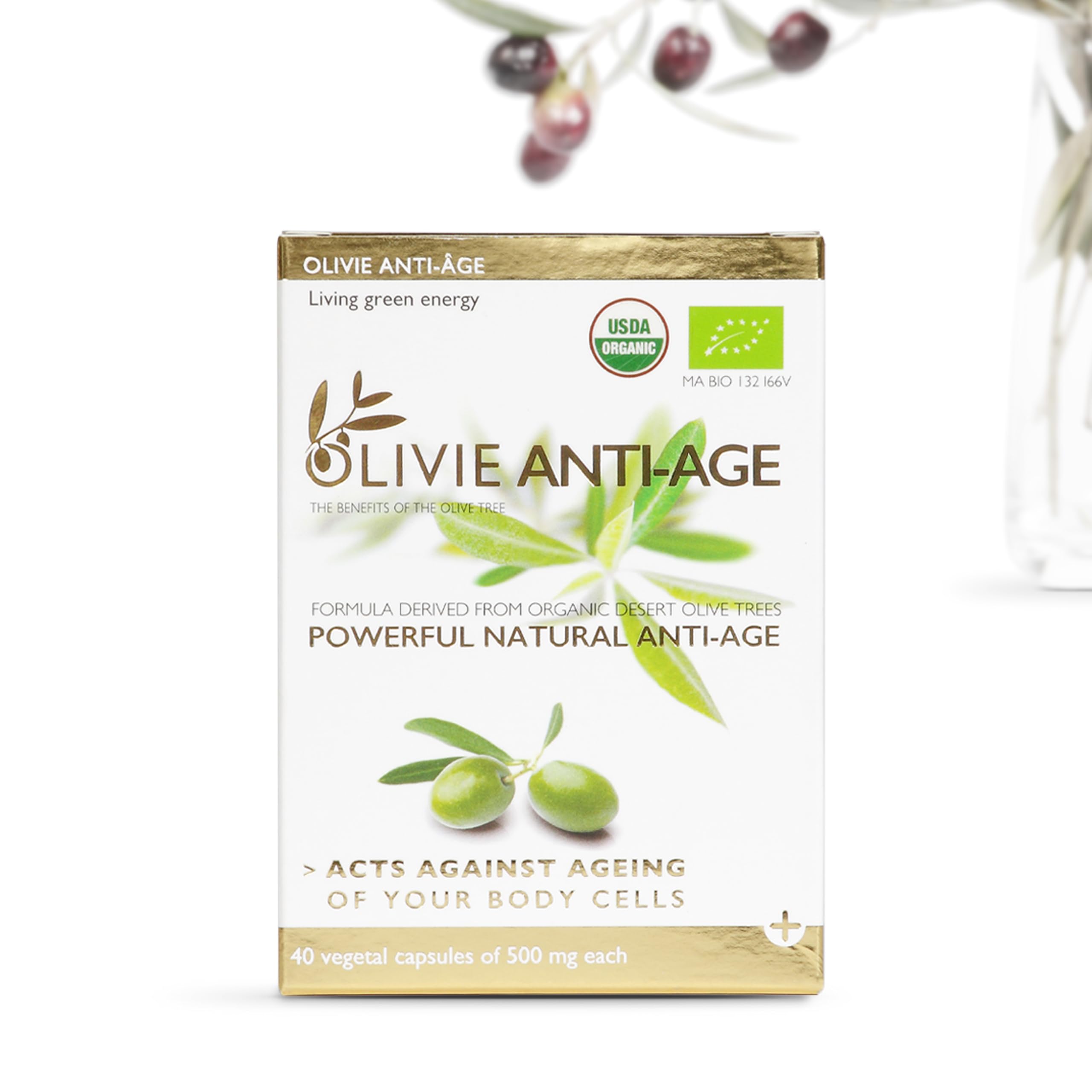 OLIVIE was born out of 130 years of experience in the olive growing field, with four generation of family devoted to and passionate about the care of olive trees. Our history, knowledge of the olive tree and its fruit have enabled us to develop a range of organic antioxidant supplements of unrivaled potency. ABOUT OUR PROCESS Organic olive trees, struggling to survive in Morocco's desert climate, go into "panic mode", diverting all their natural energy from the roots to other parts of the tree. This produces extraordinary levels of antioxidants in the fruit, leaves and buds – resulting in a wholly organic olive fruit and olive leaf extract bursting with polyphenol value and goodness. DESERT OLIVE TREE BENEFITS Clinically tested, and backed by superior R D, OLIVIE Anti Age Capsules are naturally obtained, with all the purity of the desert and with no additives or solvents. The concentration of hydroxytyrosol in this supplement is 5500 times greater than a regular olive oil, helping defend your system from free radicals and other toxins!. ALL NATURAL ANTIOXIDANT SUPPLEMENT The polyphenols contained in OLIVIE Anti Age (hydroxytyrosol, tyrosol, oleuropein) are known to be super powerful antioxidants, with natural anti-aging properties. These highly concentrated capsules contain all the natural benefits of the organic olive leaves, baby leaves, olive fruit and olive oil. This unrivaled wealth of hydroxytyrosol is exceptionally bioavailable and easily absorbed by the body. OLIVE LEAF EXTRACT CAPSULES Organic olive leaf and olive fruit capsules are made from all the goodness of the desert's olive trees. Our Anti Aging supplement is packed with the powerful polyphenols of the olive leaf, the olive oil and the olive fruit itself. Polyphenols are the most potent antioxidants, and they promote active rejuvenation of your body's skin cells.