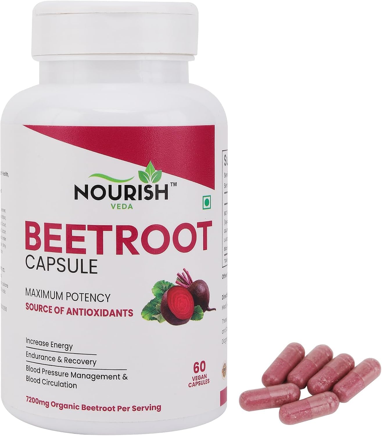 HIGH POTENCY BEETROOT – Delivers 7200mg of pure, organic beetroot powder per serving to naturally enhance stamina, endurance, and blood flow. energy booster certified vegan non gmo superfood endurance pre workout muscle recovery superfood beetroot capsules powder supplement organic pills nitric oxide booster circulation support natural They're also free from gluten, dairy, soy, and artificial additives—making them a clean choice for daily use. Made with Clean, Tested Ingredients: These beetroot capsules are crafted from non-GMO, organic beets and are third-party lab-tested to ensure purity, potency, and safety. Just two capsules a day give you all the benefits of beetroot powder capsules in a convenient, portable format. Easy to Take, No Mess or Taste: Skip the messy beet juice or powders. Our beet pills are small, easy to swallow, and taste-free.Side effects are more likely if supplements are taken in high doses, as substitutes for prescribed medications, or in combination with multiple supplements. If you experience severe side effects, discontinue use immediately and seek medical attention. It's important to read labels carefully, exercise caution, and consult your healthcare professional before taking any supplement. As the Food and Drug Administration (FDA) advises, dietary supplements can support your overall health but may also have powerful effects on the body. Made with Clean, Tested Ingredients: These beetroot capsules are crafted from non-GMO, organic beets and are third-party lab-tested to ensure purity, potency, and safety. They're also free from gluten, dairy, soy, and artificial additives—making them a clean choice for daily use. beetroot capsules are a simple way to add the benefits of organic beetroot powder to your wellness habits. Whether you're into fitness, outdoor activities, or everyday energy balance, they fit seamlessly into your daily routine.
