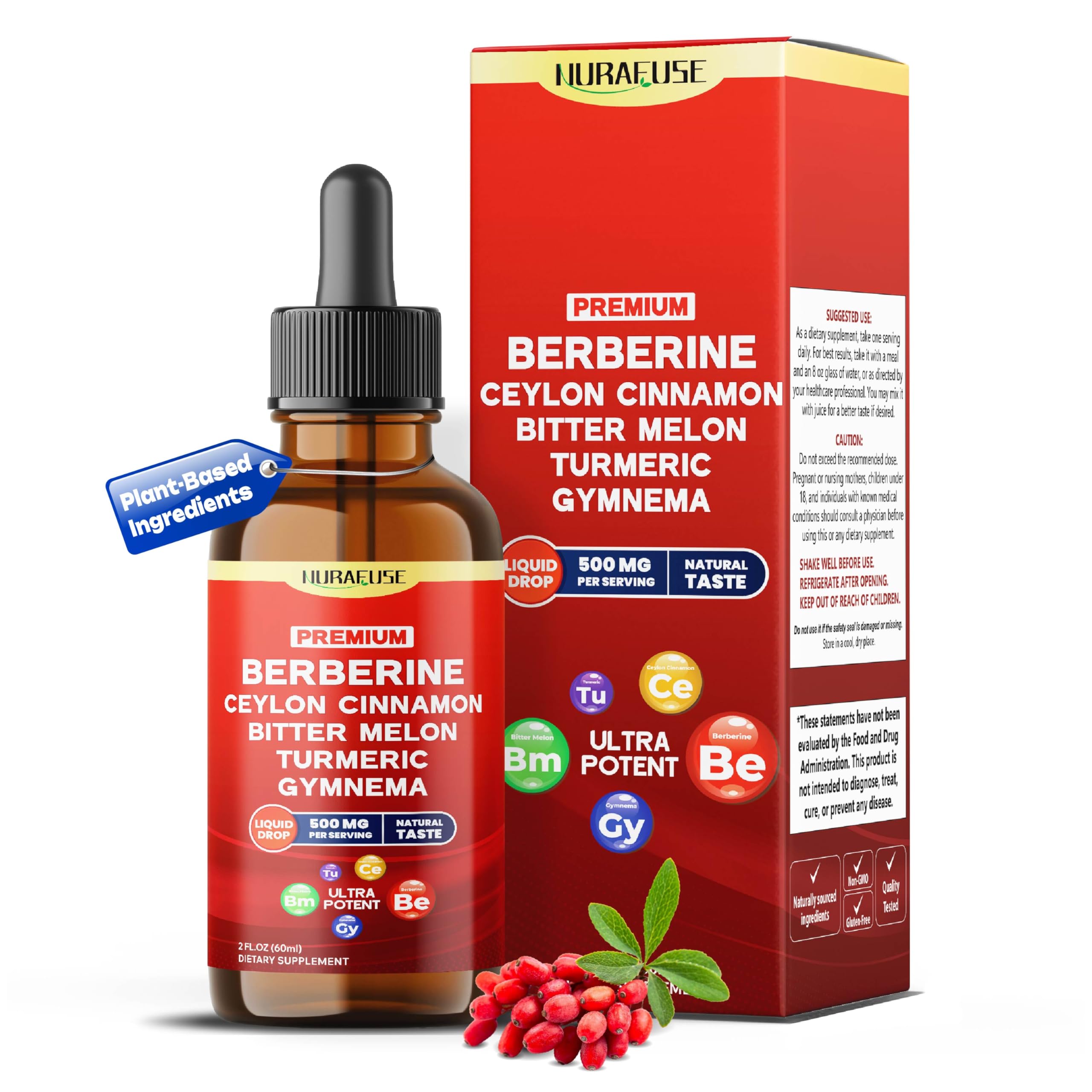 Organic Berberine Ceylon Cinnamon Bitter Melon Turmeric Gymnema Liquid Drops 1500mg per Serving Ultra Potent 2 FL OZ (60ml) 60ml (pack of 1)