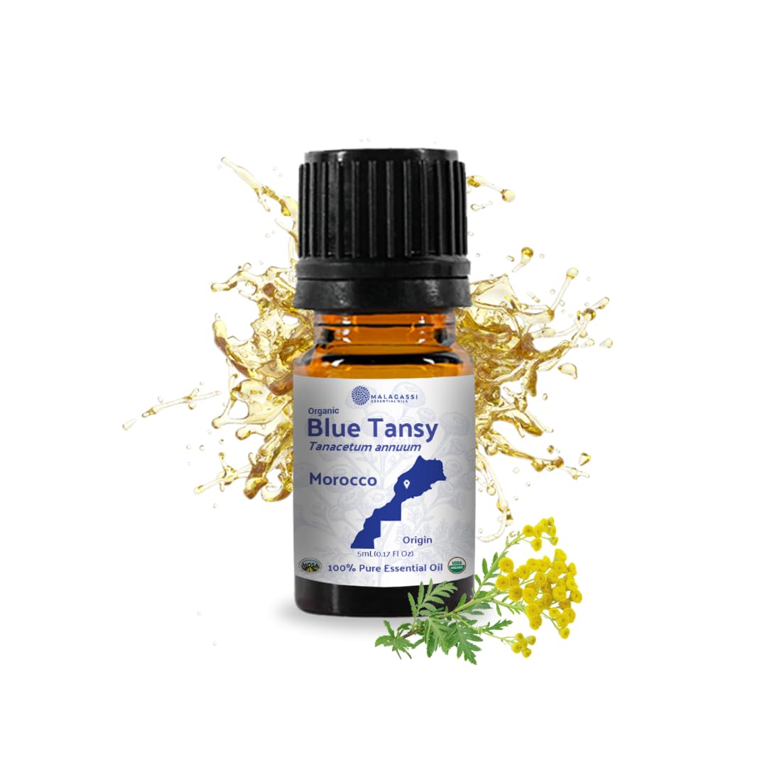 Organic Blue Tansy Essential Oil Direct from Malagassi Essential Oils - Ideal in Face Oil - Organic Blue Tansy for Candle Making and Soap Making (5 mL) Organic Blue Tansy 0.17 Fl Oz (Pack of 1)