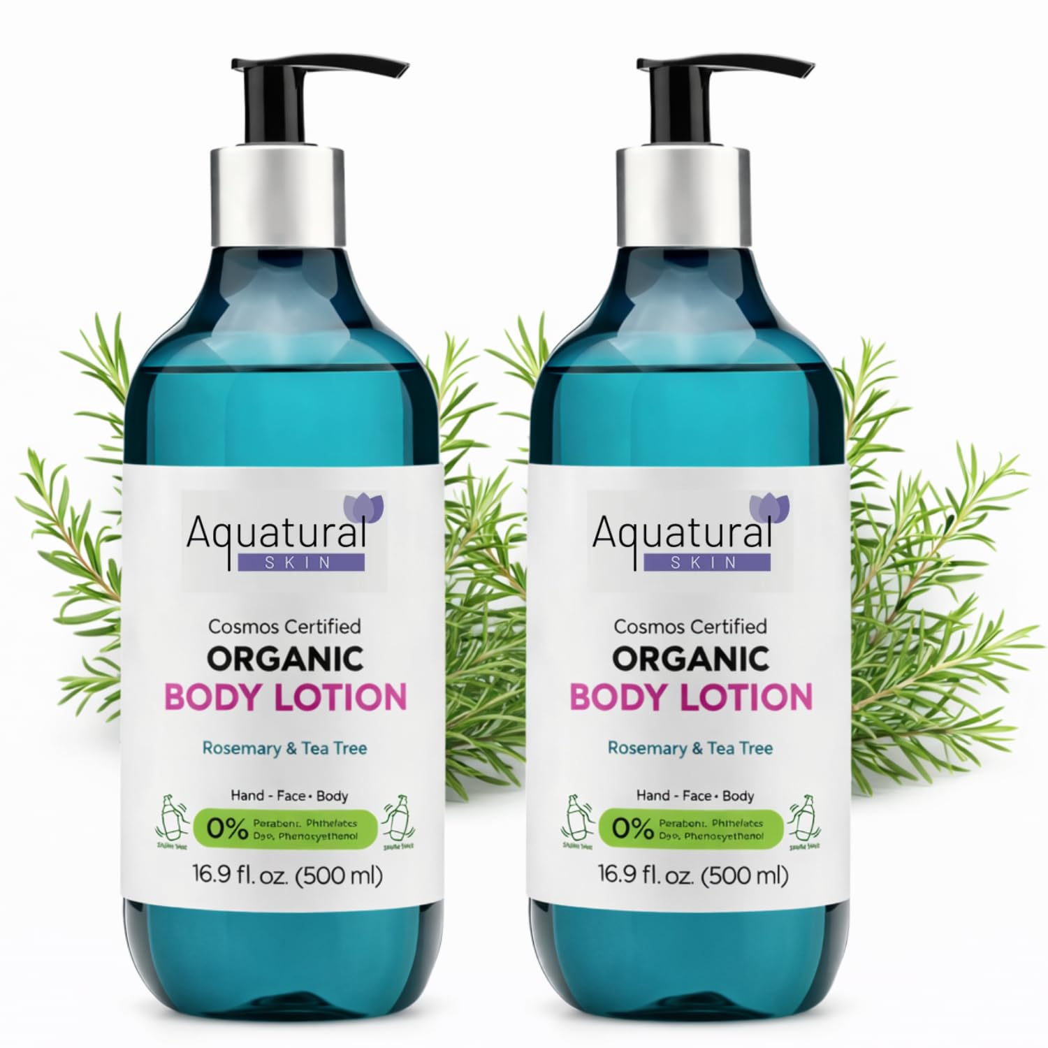 Organic Body Lotion for Women & Men Cosmos Certified Daily Lotion Sensitive Skin Lotion Deep Hydration for Dry Rough & Sensitive Skin Types Lightweight Rosemary Tea Tree 33.8 Fl Oz Tea Tree-2 16.9 Fl Oz (Pack of 2)