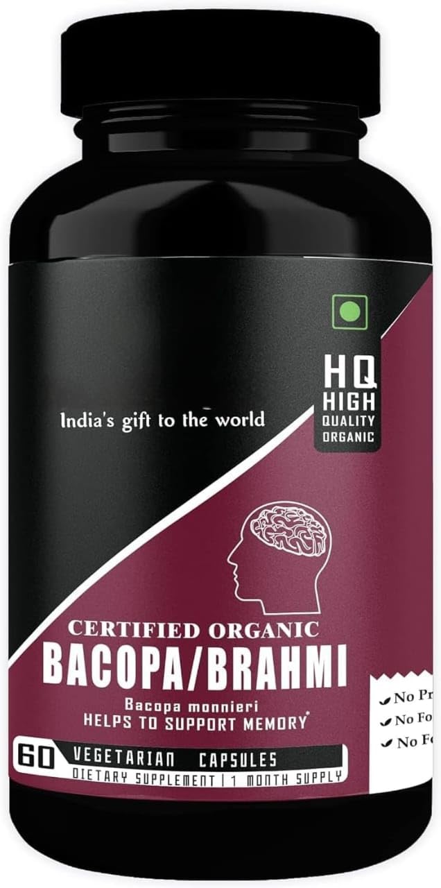 Organic Brahmi Capsules For Wellness Bacopa Monniera 500mg, 60 Veg. Capsules (Pack Of 1)