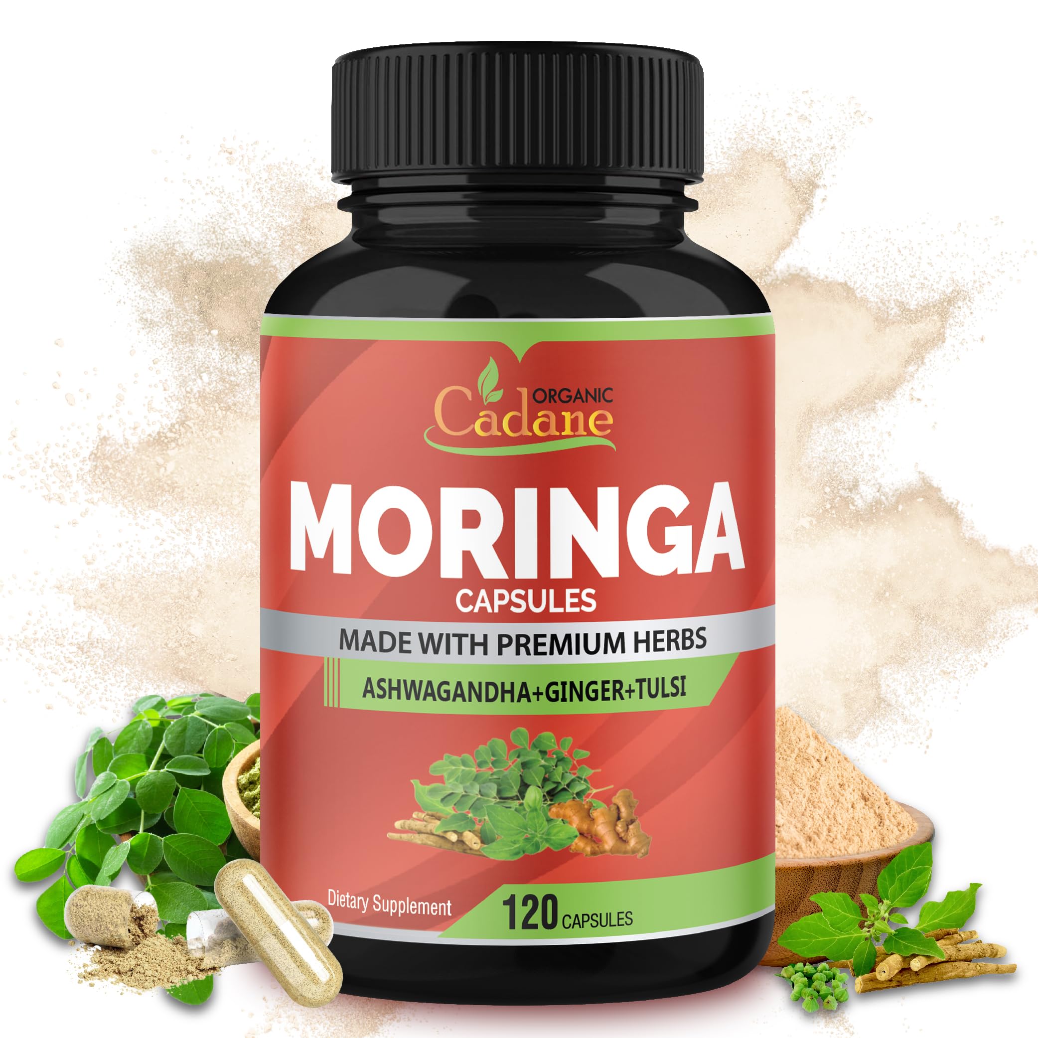 ? The extracted active ingredients are manufactured by super-concentrated methods. We would like to distribute this nutrient-dense gift from nature to humans. ? Guarantee: Our dietary supplement products are produced in GMP, ISO-certified manufacturing facilities. All our supplements are tested by a third-party independent laboratory to ensure quality products. ? Our product comes in 120 capsules bottle. This complex herbal supplement is the optimized solution with super strength, just 1-4 vegetarian capsules per serving, for 30 days supply. ? Strong combination of 4 highly concentrated herbal ingredients: Moringa, Ashwagandha, Ginger, Holy Basil Tulsi, bringing you overall benefits. ? Organic Cadane Moringa Capsules, a perfect combination of multi-premium ingredients with an exceptionally strong formula.