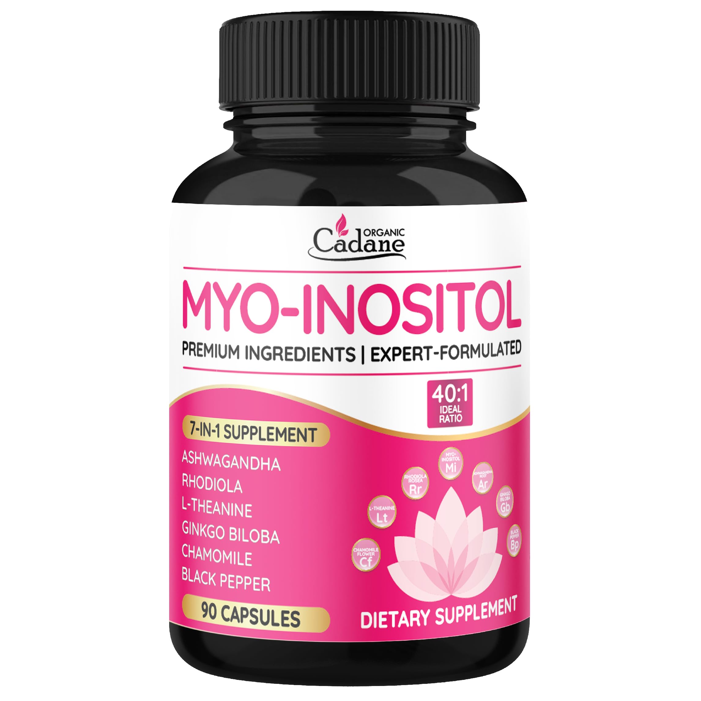 Convenient 30-Day Supply: Each bottle contains 90 capsules, designed for a full month's support. Take three capsules daily as part of your routine to support balance and maintain energy throughout your busy day. Safe, and High-Quality: Organic Cadane supplement undergoes rigorous third-party lab testing to ensure purity. Our products are manufactured in an FDA-registered facility that follows GMP, Kosher and Halal standards, guaranteeing non-GMO, gluten-free, and vegetarian-friendly products. Enjoy a product crafted for your peace of mind and long-term wellness. Optimized Formula: With the inclusion of Black Pepper, this advanced formula is designed to optimize ingredient absorption, ensuring you experience the full benefits of each capsule. A smart addition to your wellness routine for efficiency. Thoughtful Ingredient Blend: Featuring Ashwagandha, Rhodiola, L-Theanine, Ginkgo Biloba, Chamomile, and Black Pepper, this supplement provides a holistic blend to help maintain balance and support your overall well-being. Each ingredient is chosen for your health journey effectively. Balanced Wellness Formula: Cadane Myo-Inositol Capsules combine Myo-Inositol and Ashwagandha in a thoughtfully crafted formula designed to support daily balance and digestive wellness. A dependable choice to support your everyday vitality.