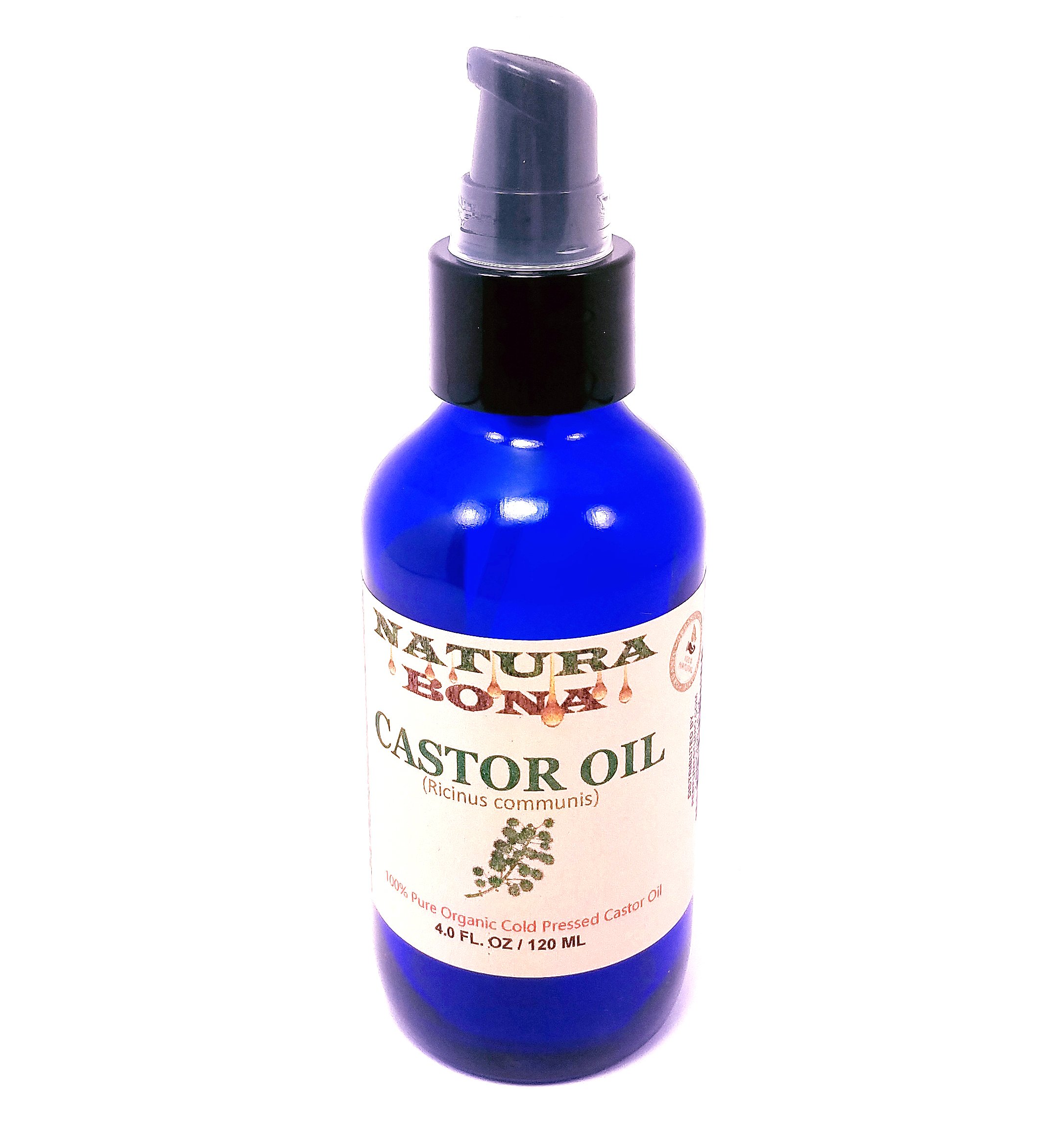 A great massage Oil for joints, muscle pain and tension. Great for thinning hair and as an all-natural skin moisturizer. Leaves your healthy looking, silky, and strong. All Natural and Unrefined free of Hexane and residues. Natura Bona 100 Pure Organic Castor Oil – 4 Oz Cobalt Glass Treatment Pump.
