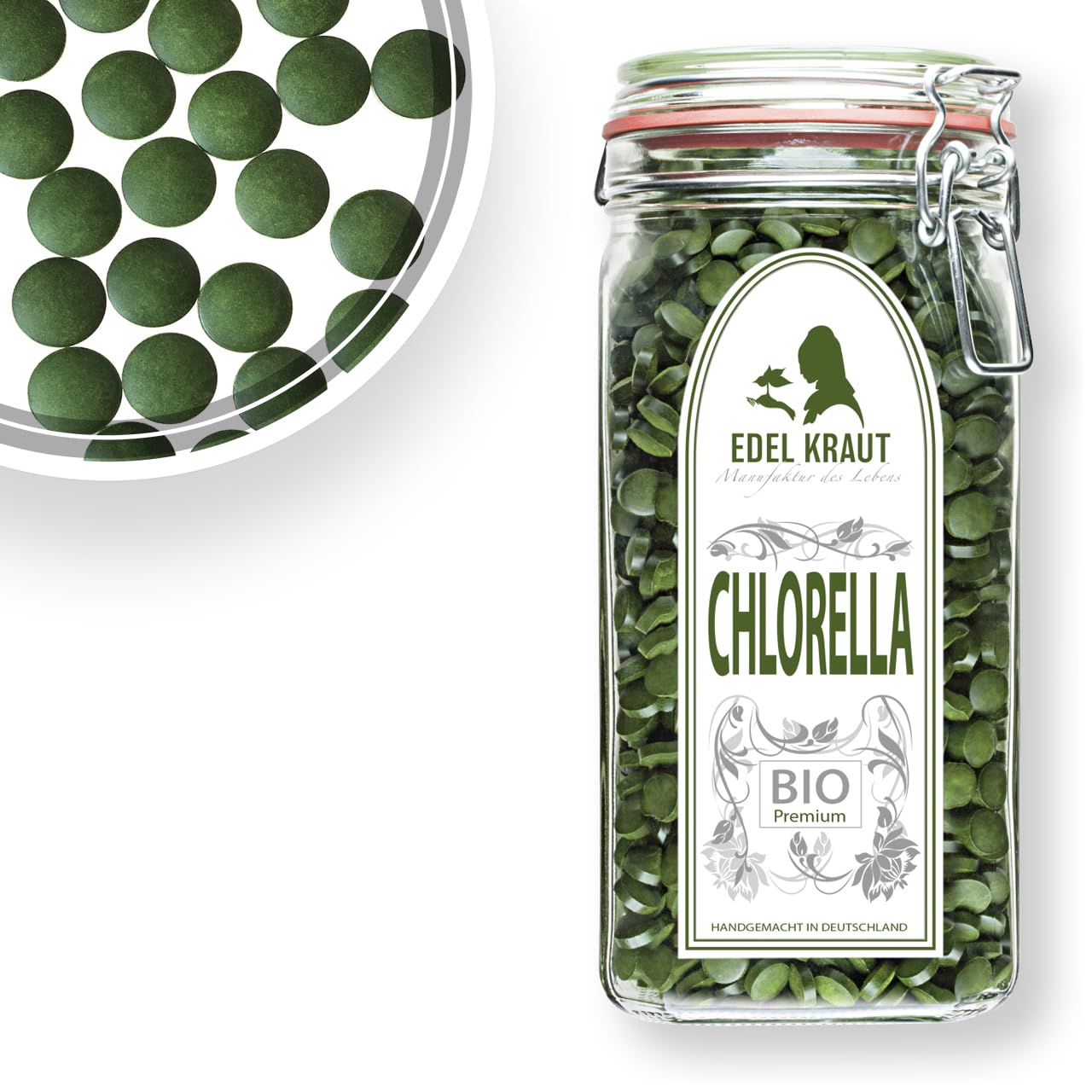 BIO Chlorella Alge 850g im Premium Glas EDEL KRAUT - Superfood frei von jeglichen künstlichen Zusätzen - BIO Zertifiziert - 100 naturrein