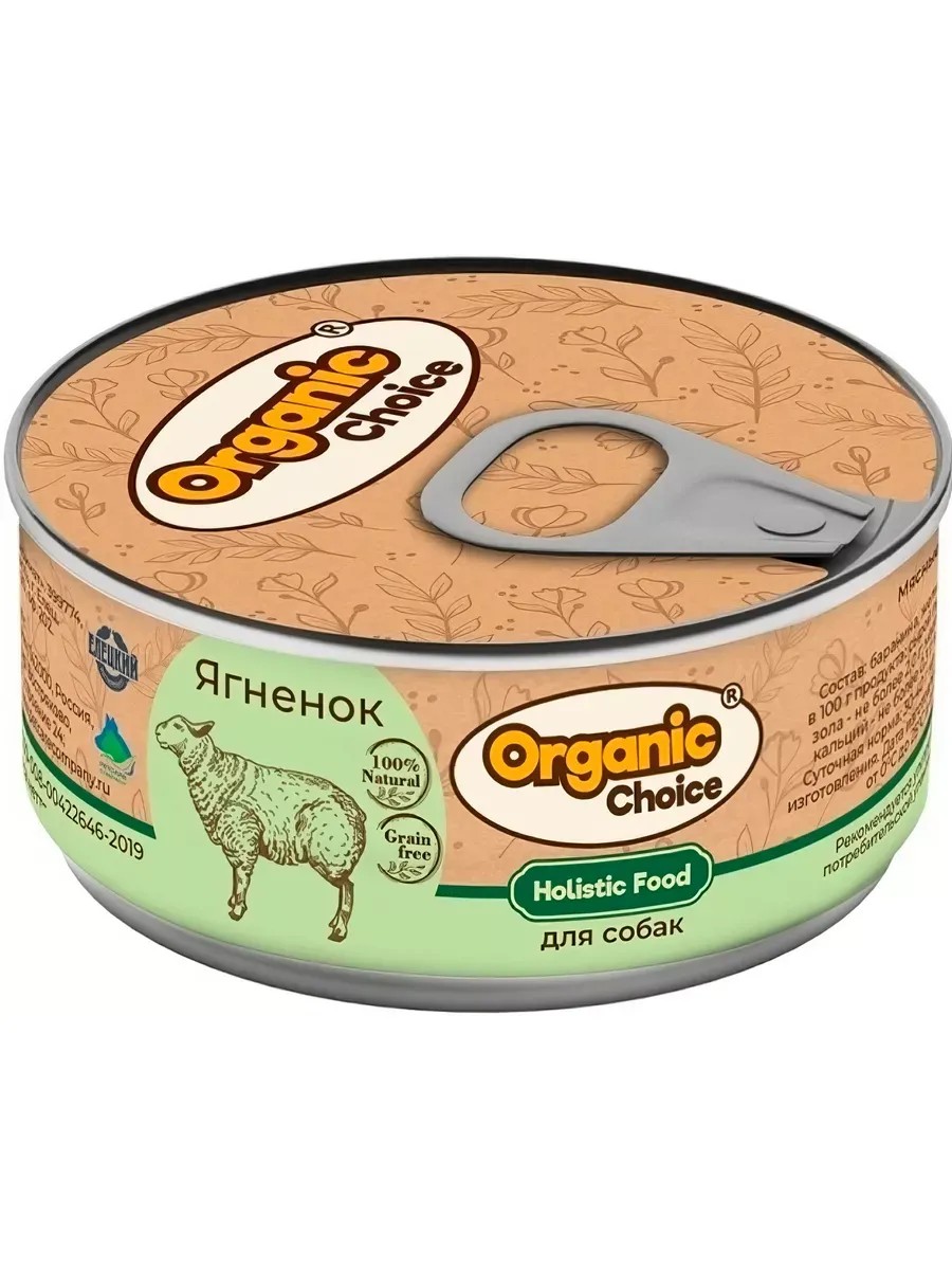 Organic Choice Grain-Free Canned Dog Food, Grain-Free, Lamb, 100g x 12 Count. Organic Choice Grain-Free Canned Dog Food, Grain-Free, Lamb, 100g x 12 Count. Organic Choice is a single-ingredient, holistic canned dog food. Organic Choice pet food is a holistic pet food for owners who care about their pet's nutrition and health. We select the best Russian factories for production! And the ingredients from which the food is made are carefully selected and meet the highest international quality standards. Canned food does not contain: cereals, GMOs, soy, flavorings. Ingredients: lamb, gelling additive, sea salt, water. Per 100 g of product: protein - 11.0 g, fat - 13.0 g, ash - 2.0 g, sea salt - 0.3-0.5 g, moisture - 82%, phosphorus - 0.4 g, calcium - 0.3 g. Energy value: 148.0 kcal. Daily intake: give food at room temperature at the rate of 30-40 g per 1 kg of animal weight.