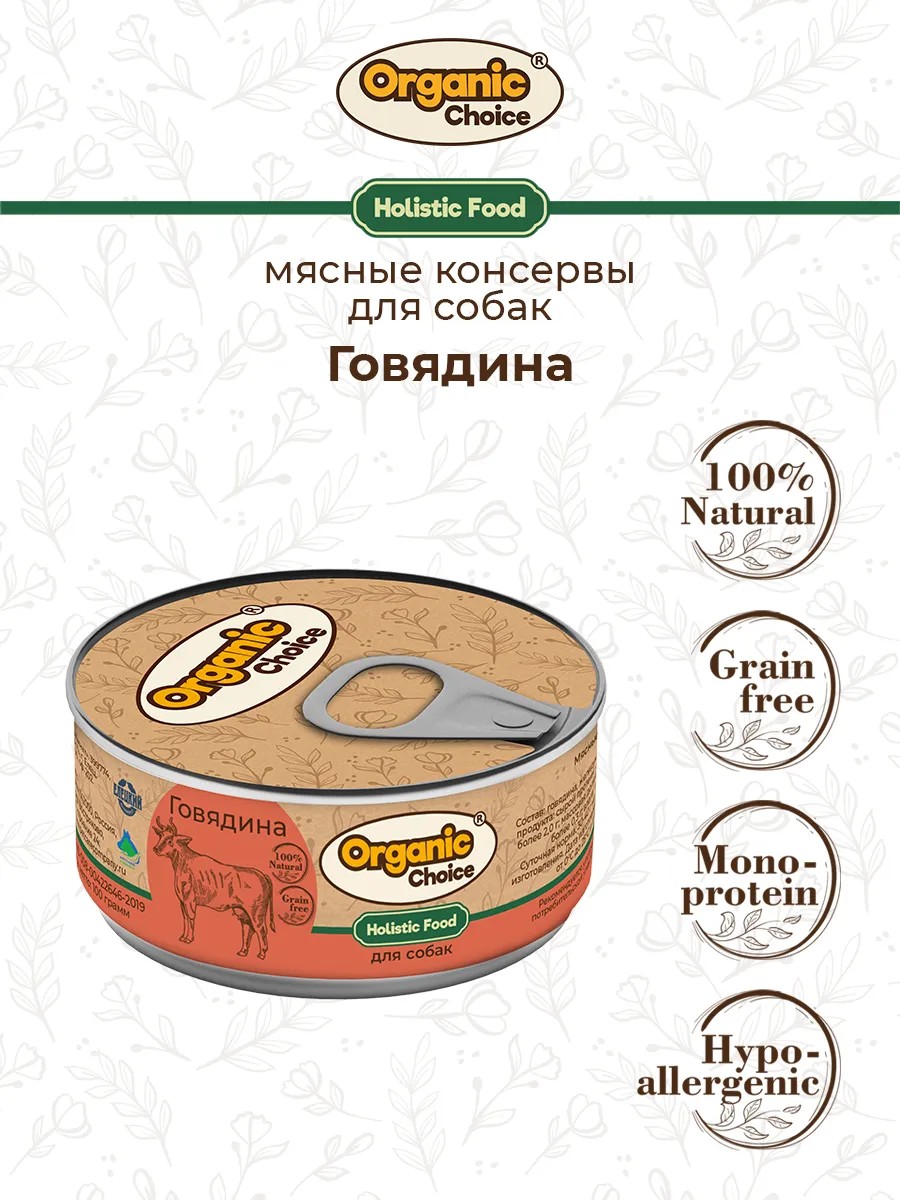 Organic Choice - монокомпонентные консервы для собак класса холистик.