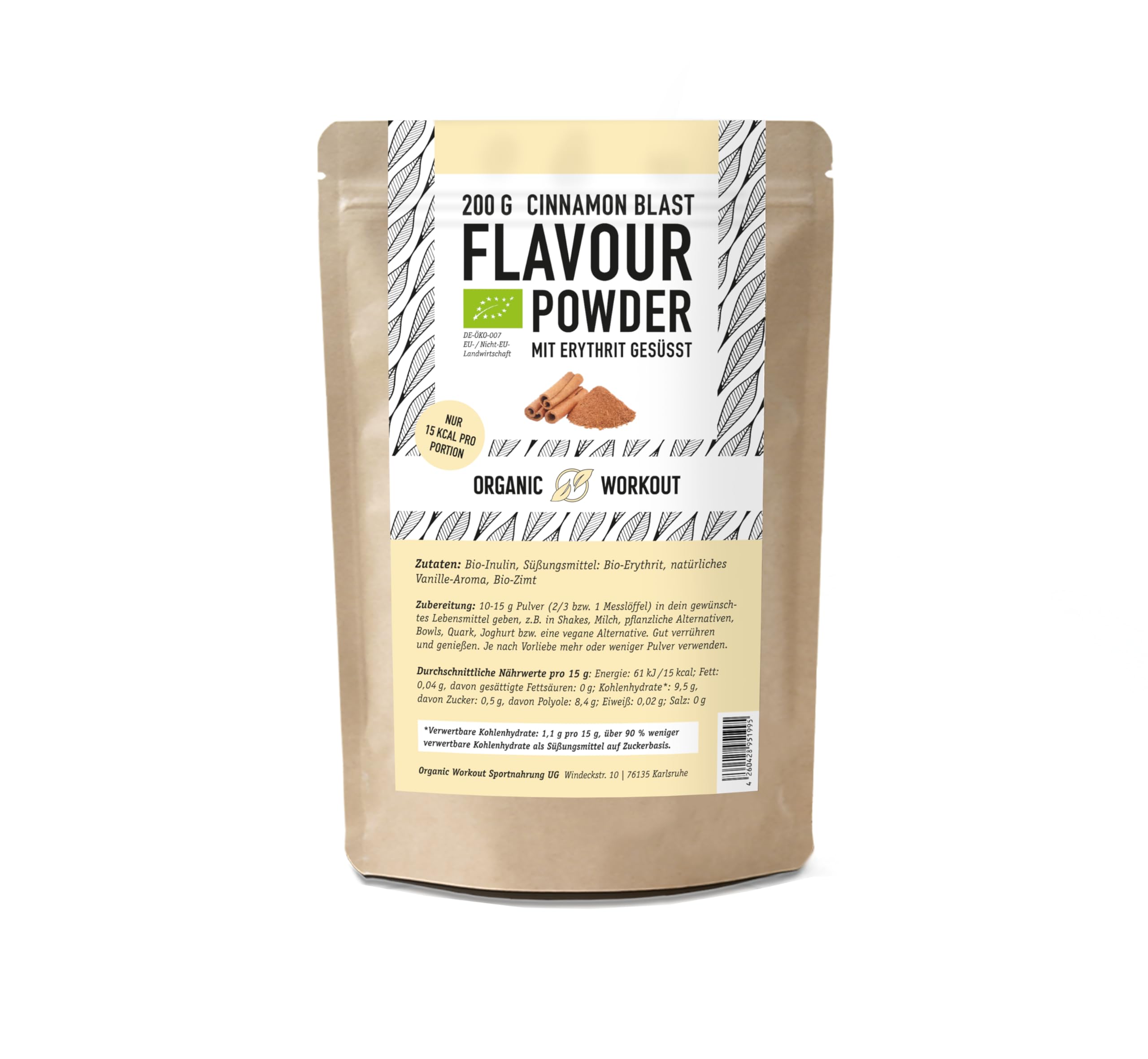 Bio Zimt Geschmackspulver - Leckerer Geschmack und Süße - ohne künstliche Süßstoffe- Vielseitig einsetzbar für Lebensmittel Getränke - Flavour Powder - Organic Workout (1er) Zimt 1er