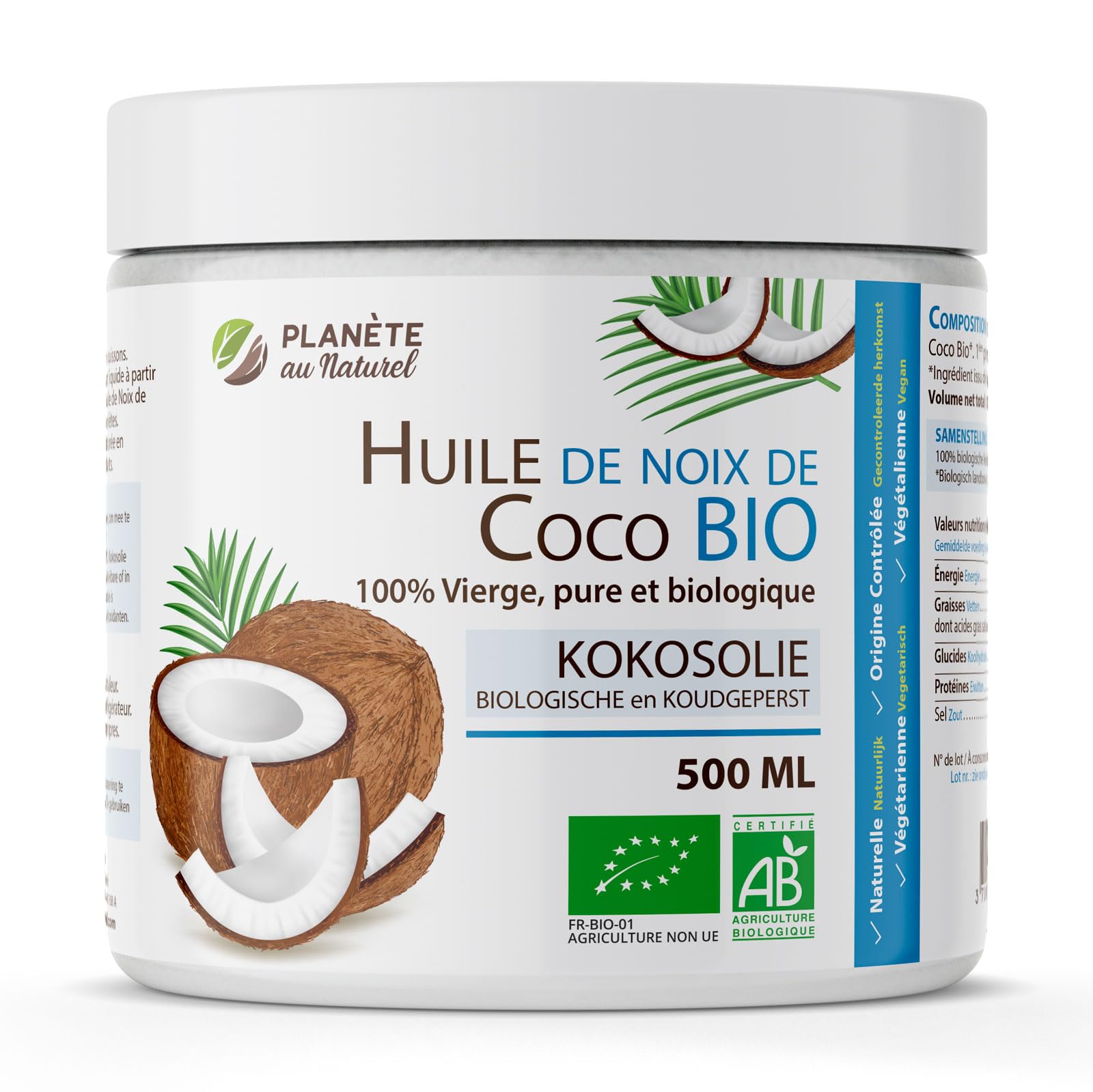 Coconut is the fruit (drupe) of the coconut palm (Cocos nucifera), one of the representatives of the palm family or Arecaceae. The complete inflorescence can reach 1 meter long. The fruit, which can measure up to 30 cm in diameter, is smooth and light green or orange in color when unripe, tending to brown and covered with a thick layer of brown woody fibers surrounding the nut when ripe, composed of a solid, more or less spherical ovalized shell which protects an edible whitish kernel. The coconut palm probably originated in the Indomala region. It is now acclimatized in most tropical countries. Coconut oil, also called copra oil, is a vegetable oil made from the dried endosperm of the coconut, copra. It is used in different fields and particularly for the manufacture of monoi. Coconut oil can also refer to the oil obtained from the fresh endosperm of the coconut. INGREDIENTS 100 virgin coconut oil, organic DIRECTIONS FOR USE Raw on toast, for your cooking. SAFETY WARNING Store away from light and heat. After opening: 6 months in the refrigerator. Use with clean utensils. Organic Coconut Oil - 500ml - Virgin. La noix de coco est le fruit (drupe) du cocotier (Cocos nucifera), un des représentants de la famille des palmiers ou Arécacées. L'inflorescence complète peut atteindre 1 mètre de long. Le fruit, qui peut mesurer jusqu'à 30 cm de diamètre, est lisse et de couleur vert clair ou orange lorsqu'il n'est pas mûr, tirant sur le brun et recouvert d'une épaisse couche de fibres ligneuses brunes entourant la noix à maturité composée d'une solide coque plus ou moins sphérique ovalisée qui protège une amande blanchâtre comestible. Le cocotier est probablement originaire de la région indomalaise. Il est maintenant acclimaté dans la plupart des pays tropicaux. L'huile de coco, aussi appelée huile de coprah, est une huile végétale fabriquée à partir de l'albumen séché de la noix de coco, le coprah. Elle est utilisée dans différents domaines et tout particulièrement pour la fabrication du monoï. L'huile de coco peut aussi désigner l'huile issue de l'albumen frais de la noix de coco. INGRÉDIENTS 100 huile de coco vierge, biologique MODE D'EMPLOI Crue sur des tartines, pour vos cuissons. AVERTISSEMENT DE SÛRETÉ A conserver à l'abri de la lumière et de la chaleur. Après ouverture : 6 mois au réfrigérateur. À utiliser avec des ustensiles propres. Biologische Kokosolie - 500ml - Virgin. Huile de Noix de Coco Bio - 500ml - Vierge.