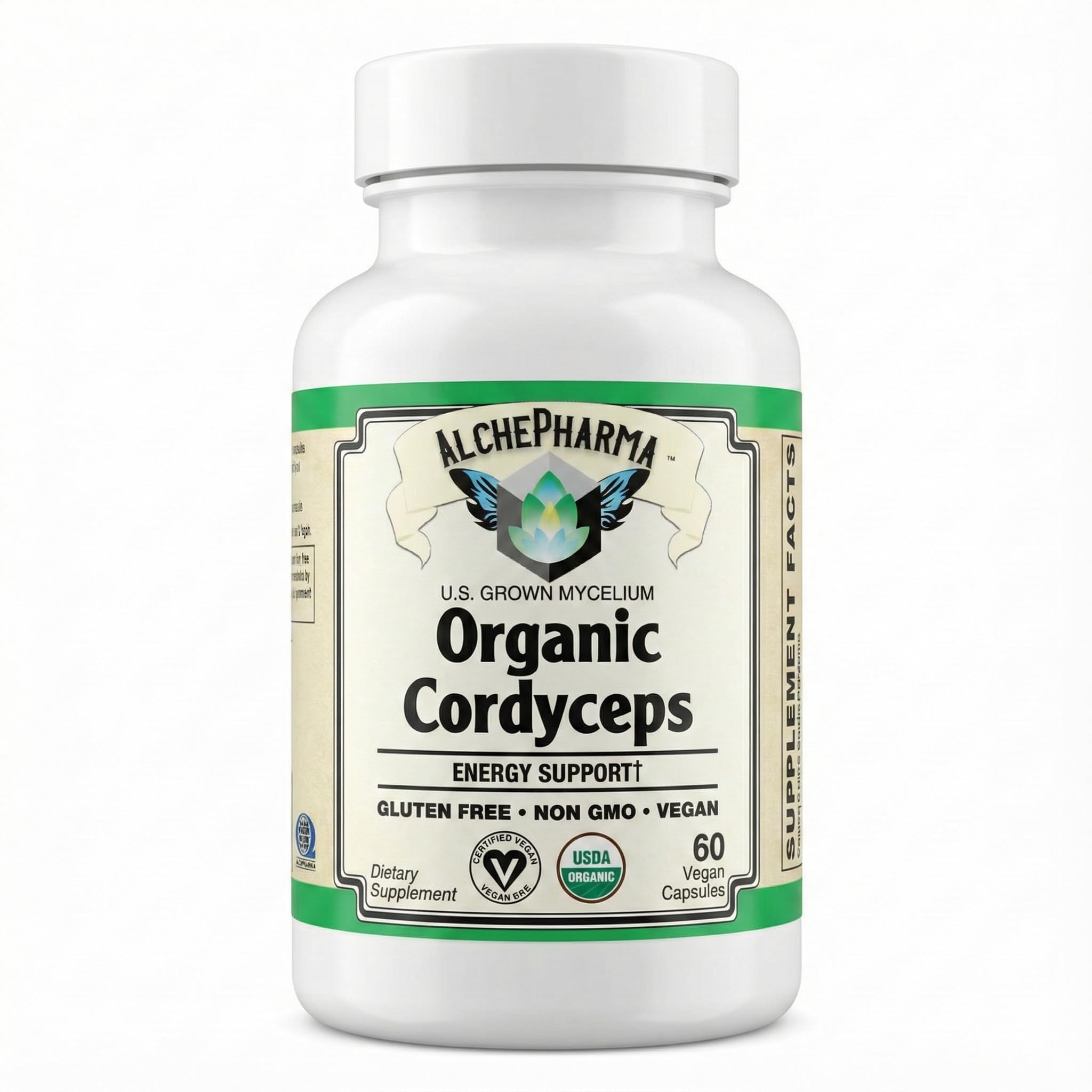 THE ALCHEPHARMA STANDARD: Founded in 2012, AlchePharma is dedicated to the intersection of nature and science. We prioritize sourcing high-quality ingredients that meet rigorous standards for purity and potency. Our commitment to excellence ensures that every bottle produced in our Cave City, Arkansas facility reflects our history of providing premium nutritional support to health-conscious consumers. PURE VEGAN FORMULATION: Designed for strict dietary adherence, these capsules are Certified Vegan and completely free from animal by-products. The delivery system utilizes an organic pullulan capsule (derived from fermented tapioca starch) and organic rice hulls as the only flow agent. This formula is Gluten-Free, Non-GMO, and contains no artificial preservatives, colors, or flavors. ? ENERGY ADAPTOGENIC SUPPORT: Cordyceps has been utilized for centuries in traditional herbal practices. This mushroom is categorized as an adaptogen and is widely recognized for its potential to provide energy support. By utilizing the mycelium stage of the mushroom life cycle, this supplement captures a broad spectrum of constituents to support vitality and daily wellness routines. U.S. GROWN CERTIFIED ORGANIC: The fungal mycelium utilized in this formulation is proudly grown in the United States under strict controlled conditions. The product carries the USDA Organic seal and is Certified Organic by QAI, guaranteeing that the mushrooms are cultivated without the use of synthetic fertilizers, pesticides, or prohibited substances, maintaining the integrity of the natural ingredient profile. STANDARDIZED POTENCY: Each serving delivers 1000 mg of Organic Cordyceps (Cordyceps sinensis) Mushroom Mycelium Powder. Unlike generic mushroom powders, this formula is scientifically standardized to contain a minimum of 40 polysaccharides (400 mg per serving), ensuring a consistent concentration of the bioactive compounds often sought after in mycological supplementation.