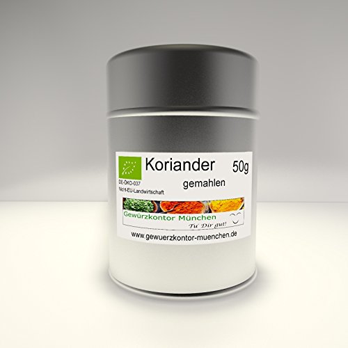 DE-ÖKO-037 Not EU agriculture ground 50g in a practical struck spicy legumes and curry, s, lamb, roast pork, wild, fish ragout, sausage, bread, desserts Ingredients / ingredients Ground coriander Address manufacturer/importer Gewürzkontor Munich, Schertlinstrasse 17, 81379 Munich More
