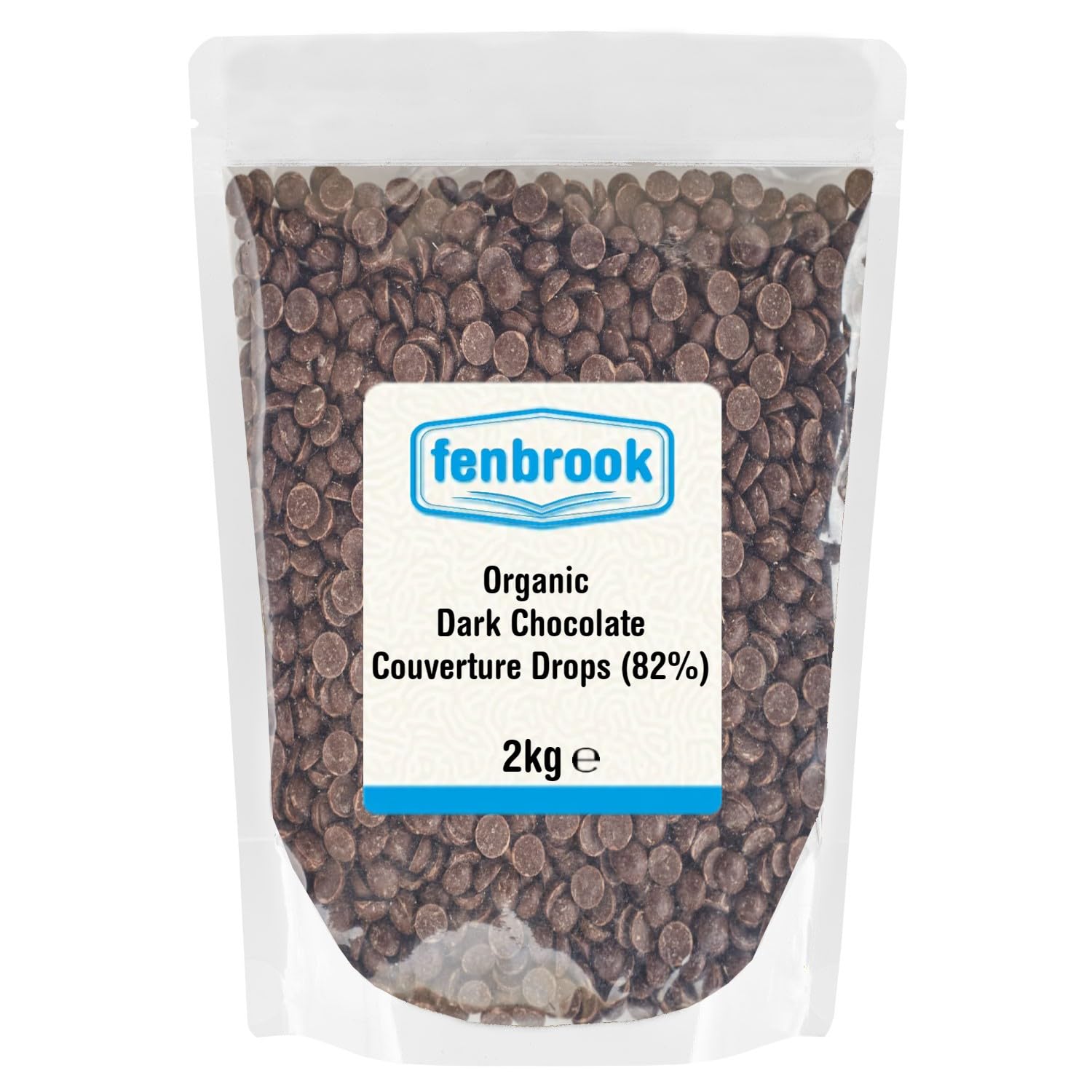 Organic dark chocolate couverture drops (82%) are small pieces of high-quality dark chocolate made with organic ingredients. Couverture chocolate is known for its high cocoa content, rich flavor, and smooth texture, making it ideal for baking, cooking, or enjoying as a snack. INGREDIENTS Organic Cocoa Mass, Organic Cocoa Butter, Organic Cane Sugar, Organic Vanilla, Organic Soy Lecithin. SAFETY WARNING Packed on premises that handle celery, cereals containing gluten, mustard, peanuts, sesame, soybeans, sulphur dioxide and sulphites and tree nuts (such as almonds, hazelnuts, walnuts, brazil nuts, cashews, pecans, pistachios and macadamia nuts). See moreProduced to the highest standards | Certified Organic | Suitable for Vegan, Vegetarians. Couverture Chocolate: Couverture chocolate is a type of chocolate that contains a higher percentage of cocoa butter compared to regular chocolate. The increased cocoa butter content gives couverture chocolate a smoother texture and allows it to melt more easily. This makes it suitable for applications such as tempering, coating, and molding. rganic Ingredients: Organic dark chocolate couverture drops are made using organic cocoa beans and other organic ingredients, such as organic sugar and organic cocoa butter. Organic farming practices typically avoid the use of synthetic pesticides, fertilizers, and genetically modified organisms (GMOs), making these ingredients more environmentally friendly. Dark Chocolate: Dark chocolate is made primarily from cocoa solids, cocoa butter, and sugar. In the case of couverture chocolate, it typically has a higher percentage of cocoa solids, around 71% in this instance. The higher cocoa content contributes to a more intense and less sweet chocolate flavour.