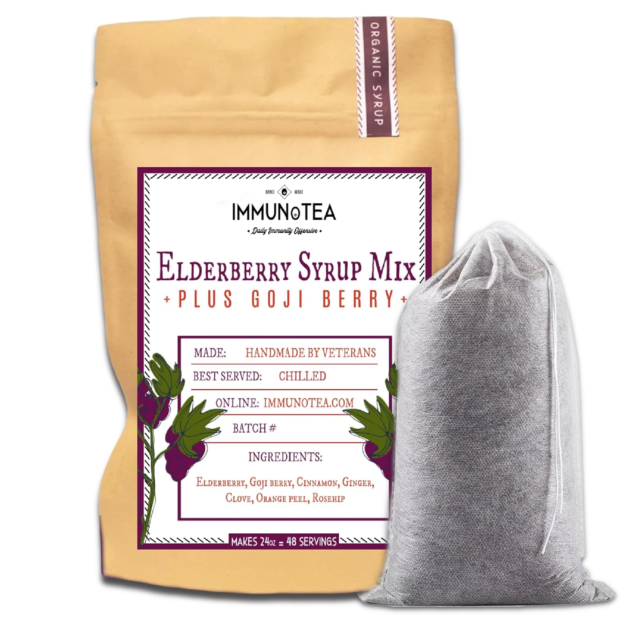 UNWAVERING COMMITMENT TO EXCELLENCE - At Immunotea, we're dedicated to enhancing your well-being. Our elderberry syrup stands as a testament to our commitment to quality, allowing you to craft a distinctive and potentially immune-boosting delight. PURE AND AUTHENTIC COMPONENTS - Quality brews start with the finest ingredients. Our elderberry kits feature organic ingredients sourced from the US, potentially aiding in bolstering your immune defenses. IMMUNE SUPPORT - Our Inspired Blends aim to fortify and rejuvenate. Each DIY elderberry concoction is curated to target vital aspects of immune support, offering a rich and flavorful experience when prepared as directed. HASSLE-FREE PREPARATION - Dive into the world of elderberry syrup without the fuss. Our kits come with pre-measured ingredients, eliminating the guesswork. Plus, the included brewing bag ensures a mess-free. ELDERBERRY SYRUP MADE EASY - Immunotea presents a top-notch DIY elderberry syrup kit. Crafted with purpose, our kit boasts non-GMO, high-quality ingredients in a variety of flavors tailored for your palate.