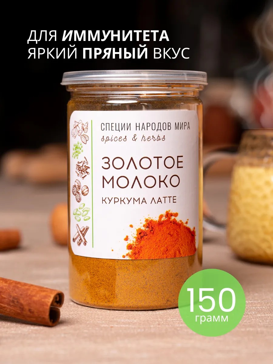 Специи Золотое молоко помогут приготовить вкусный яркий кофе, пряное молоко или некофе. Готовый напиток - это смесь пряностей, смешанных с горячим молоком. Натуральная молотая куркума идеально подходит для вечера. В целом горячее молоко с пряностями обладает успокаивающим эффектом. Подарок любимым с заботой о здоровье!
