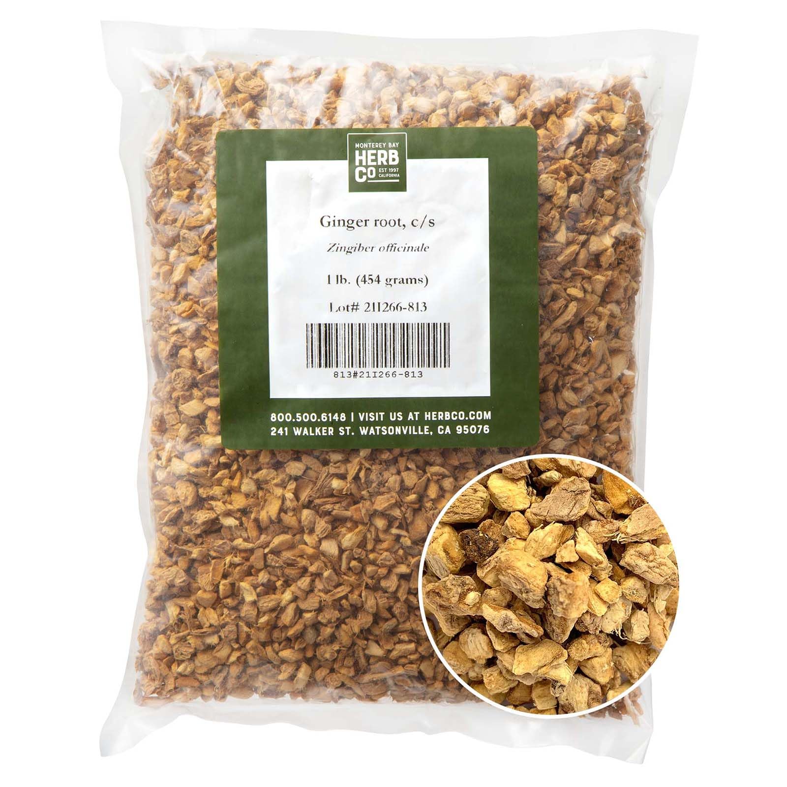 Organic Ginger Root, by Herb Co, Cut and Sifted, Loose Leaf, Dried Zingiber Officinale for Tea, Cooking, Bath Soaks & Skincare, 1/4 lb Ginger Root C/S 1/4 lb