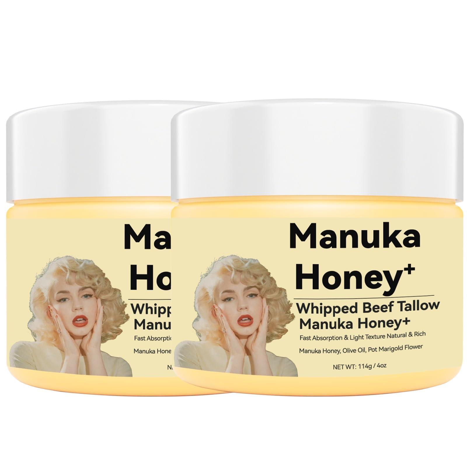 Organic Grass-Fed Beef Tallow Balm (4oz/2pack) - Whipped with Manuka Honey Ultra-Moisturizing for Face & Body Natural Skincare for Dry & Sensitive Skin 4 Fl Oz (Pack of 2)