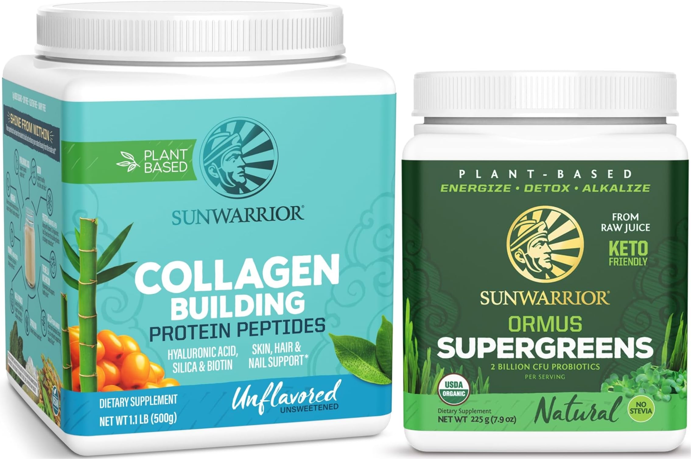 Our Guarantee: Sunwarrior has your best health in mind with every ingredient we acquire because we know you deserve clean, quality products with no shortcuts designed for the Active Warrior in you. Simple Clean Ingredients: Time to ditch those traditional formulas with hidden fillers, artificial additives potential allergens and embrace truly clean formulas that work as hard as you do. Our Top Priority: We aim to provide the cleanest, highest-quality ingredients in our products which is why we utilize an ISO-Certified, third-party lab to conduct all our heavy metals micros testing. Shine from Within: Boost your body's natural collagen production with the help of a wide range of vitamins for hair skin and nails plus beneficial botanicals like organic spirulina and sea buckthorn. Vegan Collagen Booster: Our vegan collagen powder is packed with skin nourishing amino acids, trace minerals and vegan collagen peptides in an easy to digest and bioavailable creamy blend.