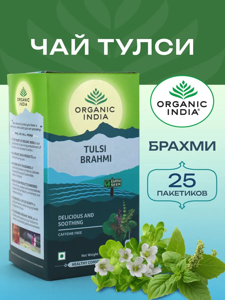 Индийский чай Organic India Tulsi Брахми — это уникальный травяной напиток, в котором идеально гармонируют полезные свойства священного базилика Тулси и активного растения Брахми. Тулси чай создан исключительно из 100% органических ингредиентов, что обеспечивает его высокое качество и неповторимый вкус.