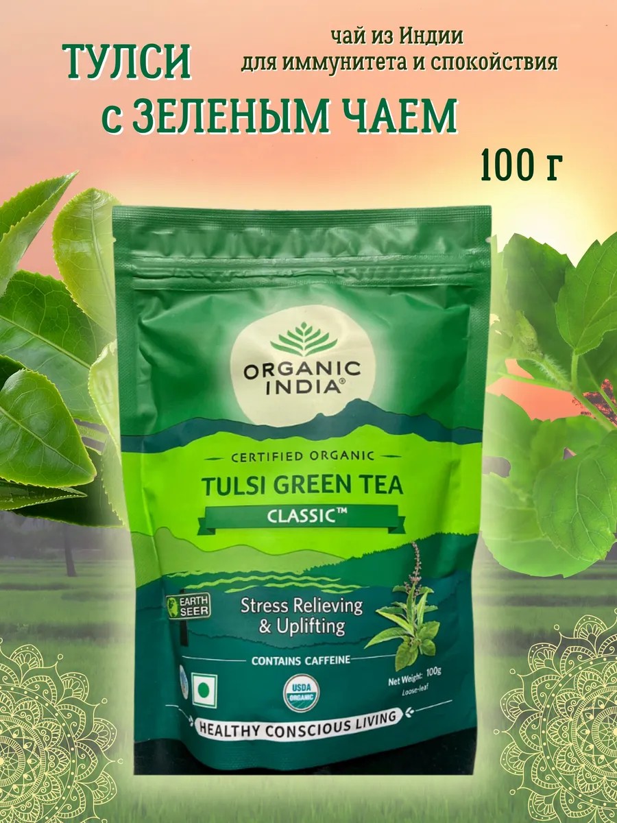 Organic India Тулси Зеленый чай, Tulsi Green Tea, чай аюрведический, 100 г