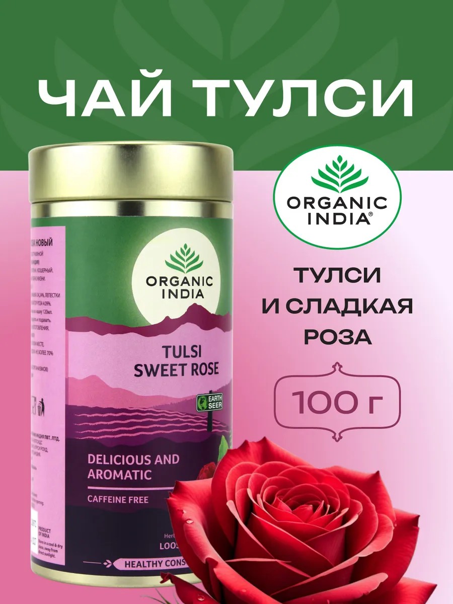Чай Organic India Tulsi Sweet Rose — это изысканный напиток, в котором гармонично переплетены полезные свойства священного базилика Тулси, сладкой розы и других натуральных ингредиентов. Индийский чай состоит исключительно из 100% органических компонентов, что обеспечивает его высокое качество и безупречный вкус.