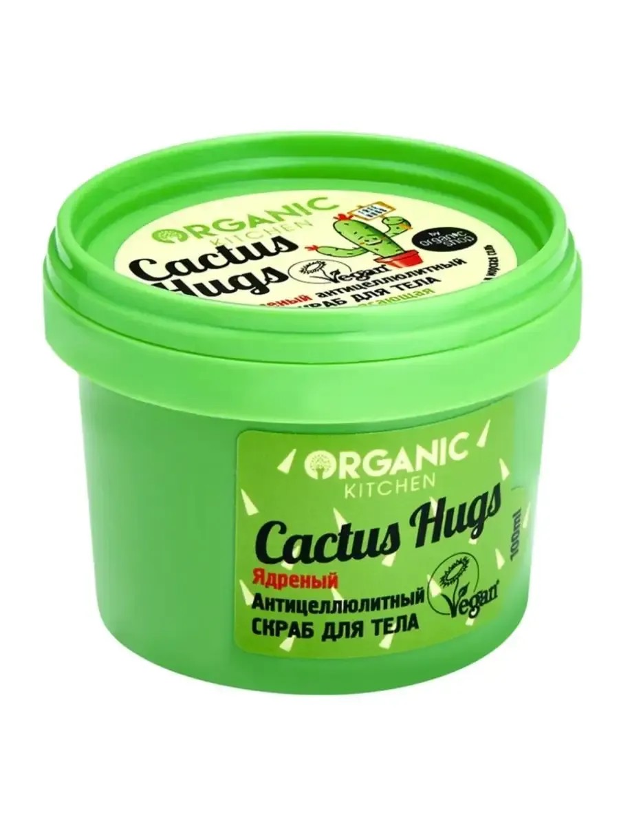 Organic Kitchen Cactus Hugs, Vigorous Anti-Cellulite Body Scrub, 100 ml. No compromises in the fight for beautiful skin! This vigorous scrub will help you achieve the figure of your dreams. Sea salt provides an excellent massage, smoothes skin texture, and helps reduce volume. Mexican agave extract deeply moisturizes, giving the skin incredible elasticity. Prickly pear extract rejuvenates the skin, restoring its tone. Directions: Apply the scrub to the skin with massaging movements, then rinse with warm water.