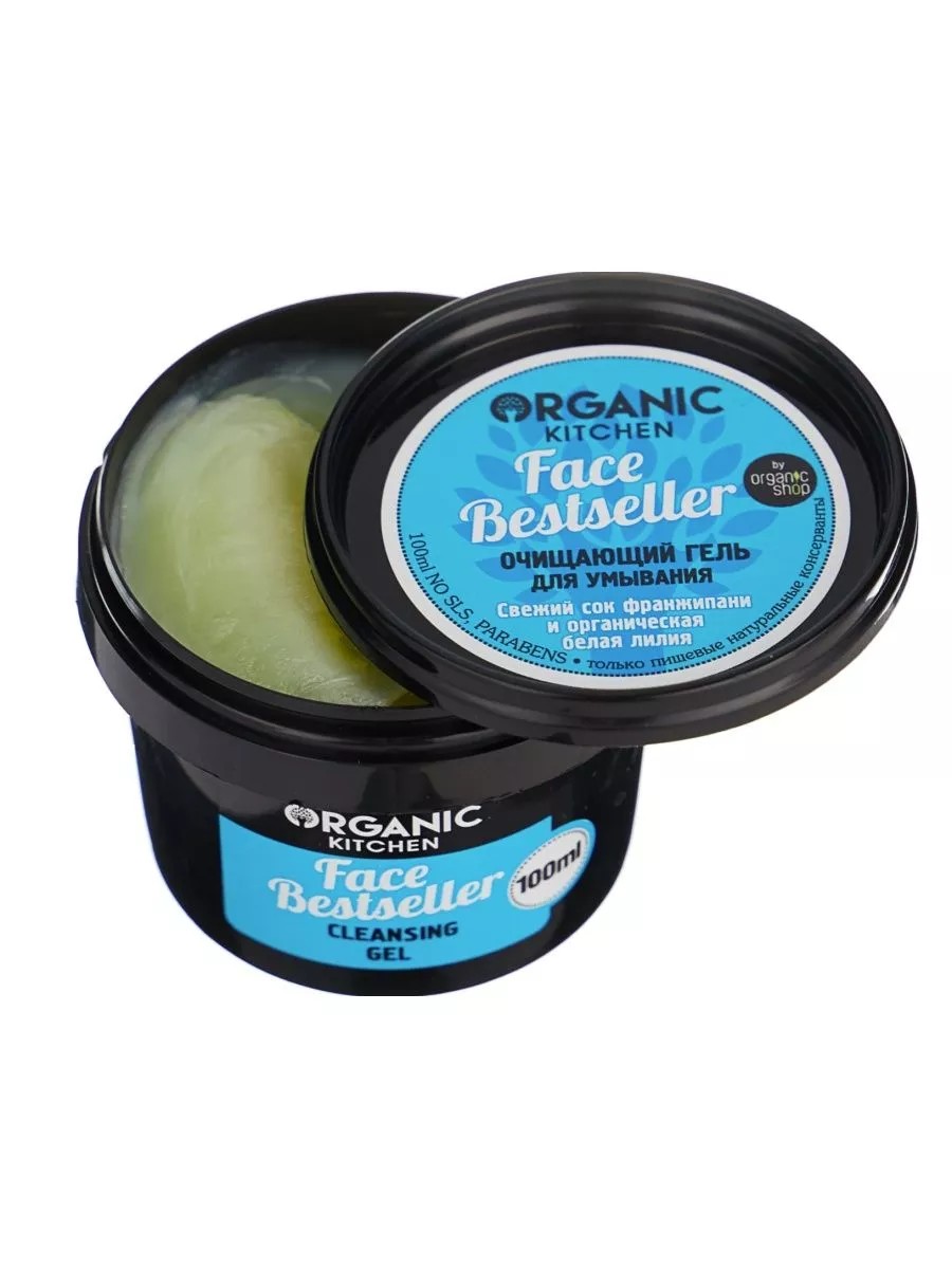 Organic Kitchen Face Bestseller, Очищающий гель для умывания 100 мл. Настоящий культовый бестселлер эффективно удаляет загрязнения и очищает поры. Благодаря своим полезным свойствам Ваша кожа не только станет восхитительно чистой, но и приобретет свежий и здоровый вид! Свежий сок франжипани оказывает противовоспалительное и тонизирующее действия, насыщает кожу витаминами. Органическая белая лилия смягчает и успокаивает чувствительную кожу, делая ее красивой и бархатистой. Применение: Нанесите небольшое количество геля на влажную кожу лица легкими массирующими движениями, а затем смойте водой.