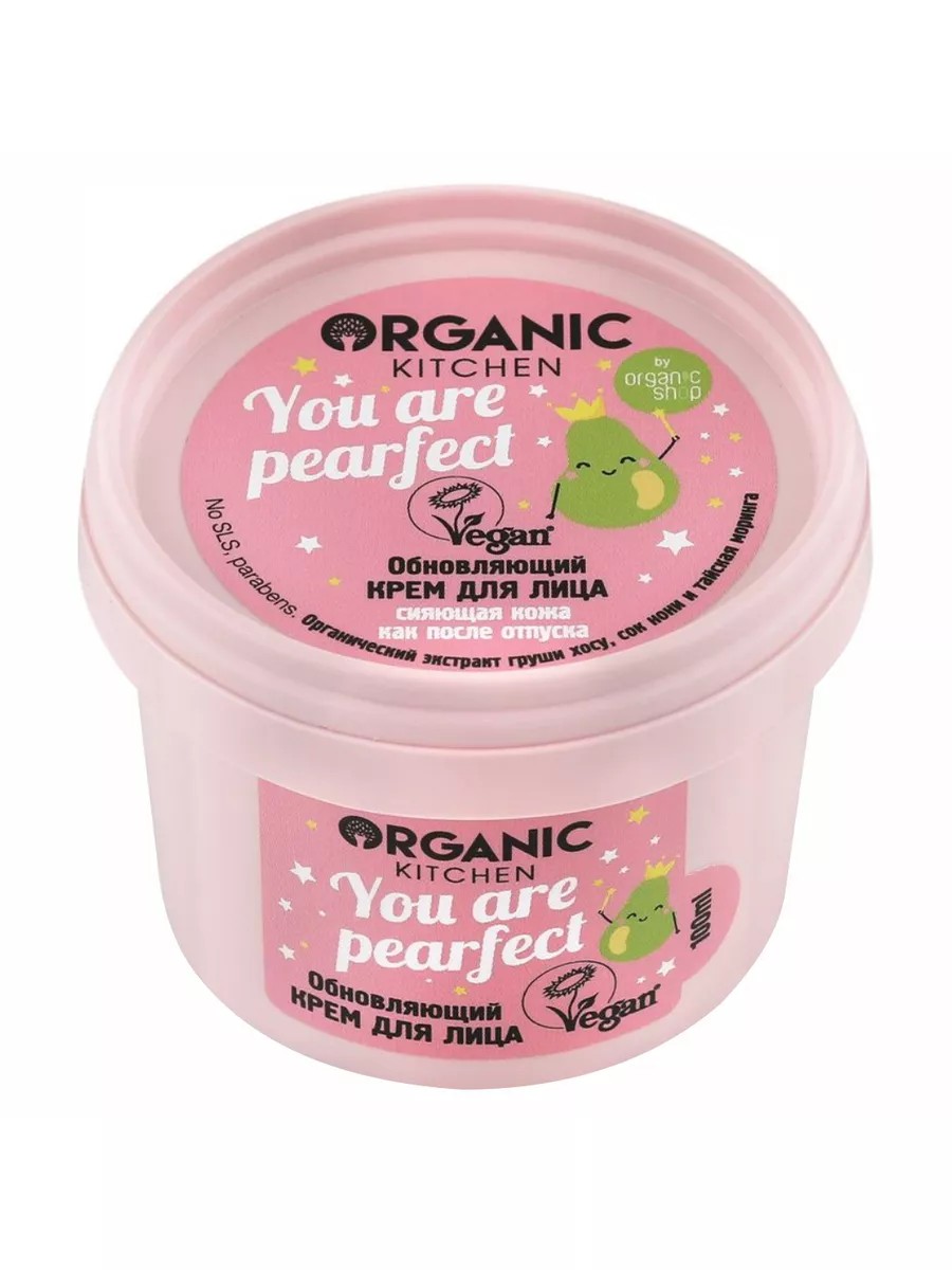 Organic Kitchen Крем для лица Обновляющий You are pearfect 100мл. Представляем вашему вниманию обновляющий крем для лица от Organic Kitchen “You are Perfect”! Этот чудесный крем создан для того, чтобы ваша кожа получила настоящий отпуск, восстанавливая свою молодость и красоту. Один из ключевых ингредиентов крема - органический экстракт груши Хосу. Этот уникальный компонент обладает восстанавливающими свойствами, омолаживает кожу и освежает ее, возвращая ей красоту и жизненную энергию. Сок Нони помогает очистить поры и придать коже естественное сияние, а масло Тайской Моринги увлажняет, смягчает и успокаивает ее. Устройте своей коже настоящий отпуск! Органический экстракт груши хосу обладает восстанавливающим действием, омолаживает и освежает кожу, возвращает ей красоту и энергию молодости. Сок нони очищает поры и придает естественное сияние. Масло тайской моринги увлажняет, смягчает и успокаивает кожу. Всего за несколько применений вы заметите, как ваша кожа становится более упругой, увлажненной и сияющей. Крем “You are Perfect” идеально подходит для любого типа кожи и станет незаменимым помощником в уходе за ней. Подарите своей коже заслуженный отпуск с обновляющим кремом от Organic Kitchen! Способ применения: небольшое количество крема нанесите на чистую сухую кожу лица и шеи легкими массирующими движениями, избегая области вокруг глаз.