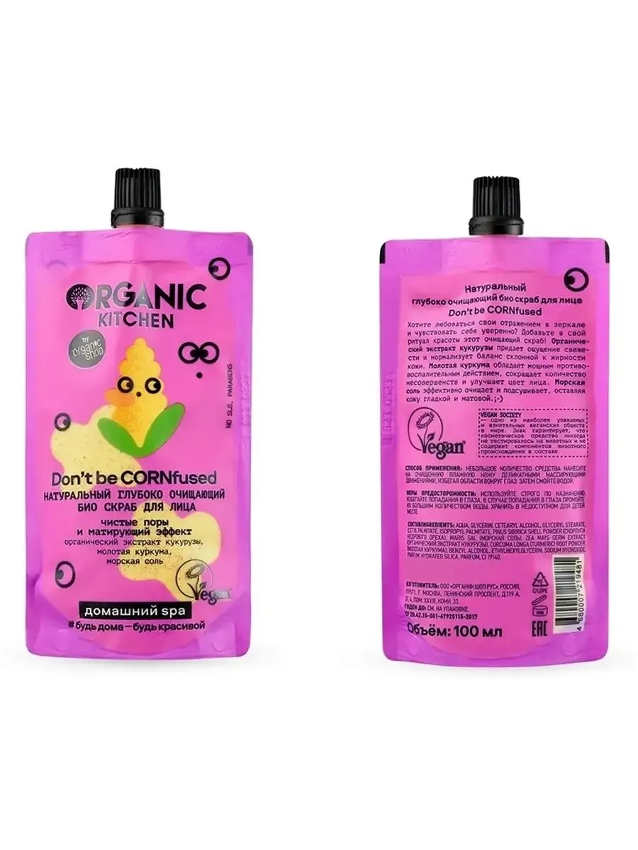 СОСТАВ:Aqua, Glycerin, Cetearyl Alcohol, Glyceryl Stearate, Cetyl Palmitate, Isopropyl Palmitate, Pinus Sibirica Shell Powder (скорлупа кедрового ореха), Maris Sal (морская соль), Zea Mays Germ Extract (органический экстракт кукурузы), Curcuma Longa (Turmeric) Root Powder (молотая куркума), Benzyl Alcohol, Ethylhexylglycerin, Sodium Hydroxide, Parfum, Hydrated Silica, Parfum, CI 19140.
