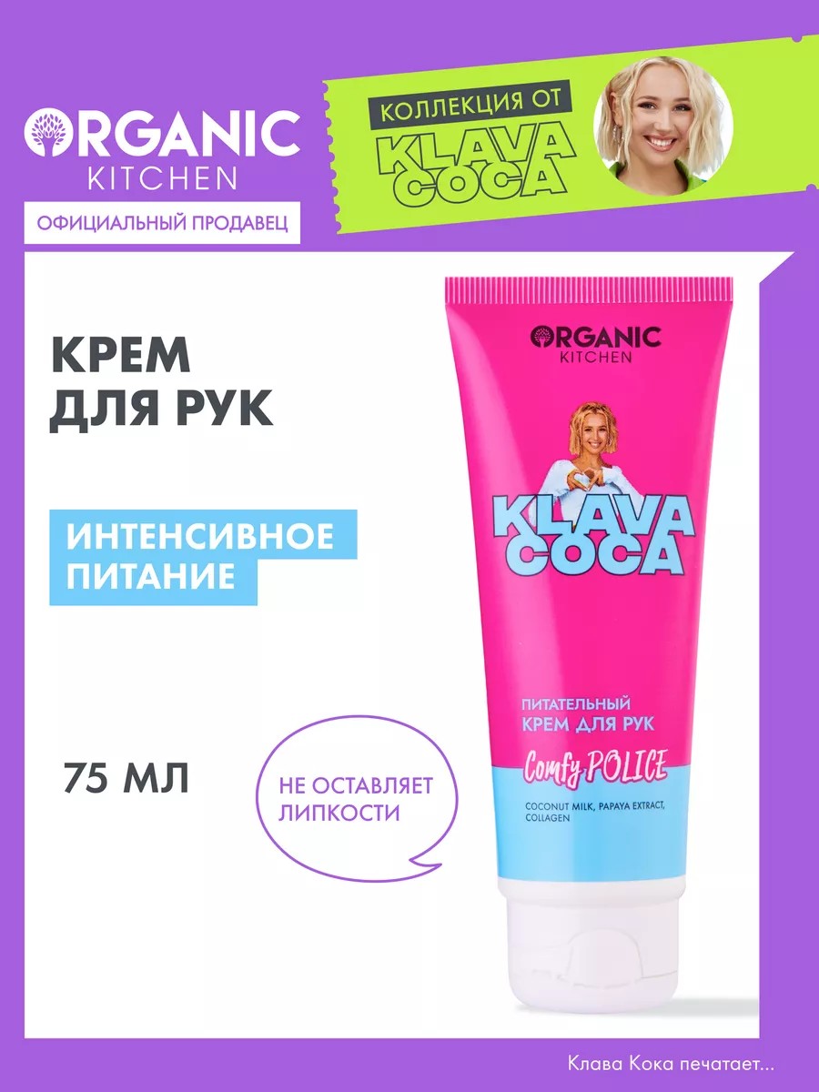 Супер питательный крем для рук Comfy Police Klava Coca насыщает кожу витаминами, обеспечивает интенсивное увлажнение и питание. Дает эффект быстрого восстановления и смягчения — руки станут мягкими, бархатными.