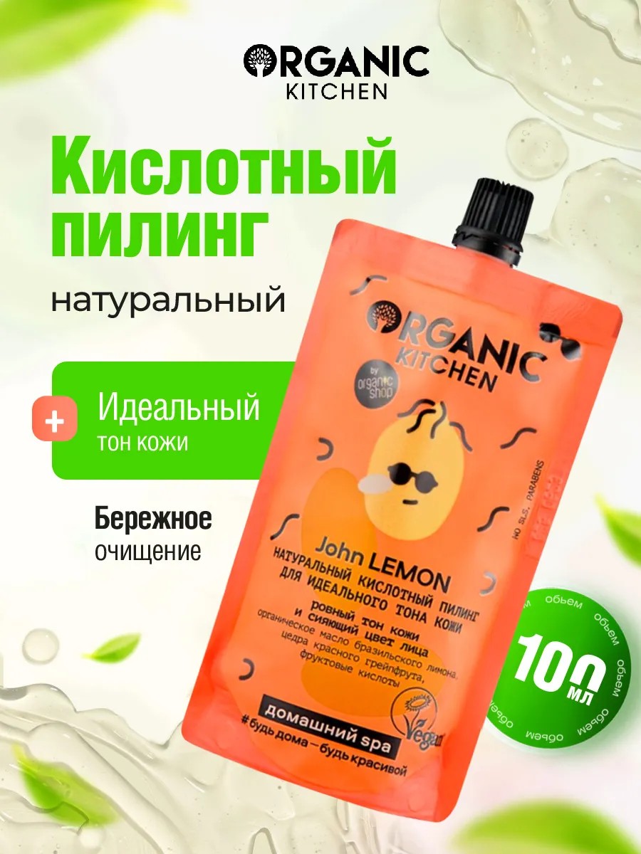 Organic Kitchen Домашний SPA Натуральный кислотный пилинг для идеального тона кожи John Lemon 100мл. Натуральный кислотный пилинг - это один из самых эффективных способов для достижения идеального тона кожи. Кислоты, содержащиеся в натуральных продуктах, таких как ягоды, фрукты и овощи, помогают отшелушить омертвевшие клетки кожи, удалить загрязнения и улучшить кровообращение. Натуральный био пилинг для идеального тона кожи "John LEMON". Всего несколько минут до важного события? Этот цитрусовый пилинг как по волшебству превратит тебя в звездную красотку! Органическое масло бразильского лимона тонизирует кожу и осветляет несовершенства тона, улучшая цвет лица. Цедра красного грейпфрута способствует сокращению пор и придает роскошное сияние. Фруктовые кислоты полируют, выравнивая рельеф и разглаживая морщинки.