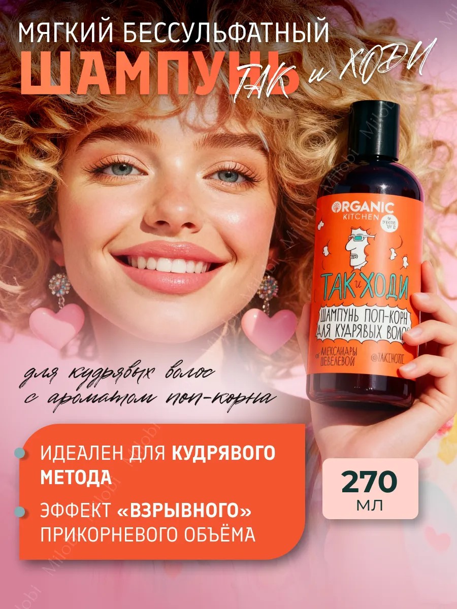 Бессульфатный шампунь с эффектом поп-корна для людей с волнистыми и кудрявыми волосами, подходит как для женщин, так и для мужчин, которые любят объём. Создан при участии блогера Александры Шевелевой. Мы соединили несколько мягких ПАВ, которые тщательно очищают кожу головы и создают блеск волос и взрывной прикорневой объём, который держится несколько дней. Сочетание увлажняющих компонентов экстракта сахарного тростника и полисахаридов сохраняет волосы от спутывания. Без sls, без парабенов. Алое вера в его составе увлажняет локон, формирует завиток, отвечает за укрепление, защиту от солнца и термозащиту. Подойдет всем типам волос: кудрявым, вьющимся и волнистым, сухим и поврежденным, окрашенным и натуральным. Мужским и женским. Продукт ТиХ также подходит для прядей с биозавивкой. Средство можно использовать с фиксирующим гелем или другим стайлингом. При технике смастерс рекомендуем пенку для создания кудрей от Natura Siberica, арт. 137745639 . Способ применения: Вымойте голову шампунем с применением увлажняющего бальзама для волос. Нанесите несмываемый уход для волос, например левин - это может быть спрей для укладки волос или несмываемый крем для волос. Затем распределите гель для укладки волос для кудрявого метода по длине волос, формируя завиток. Высушите волосы феном с диффузором. Разбейте каст при необходимости.