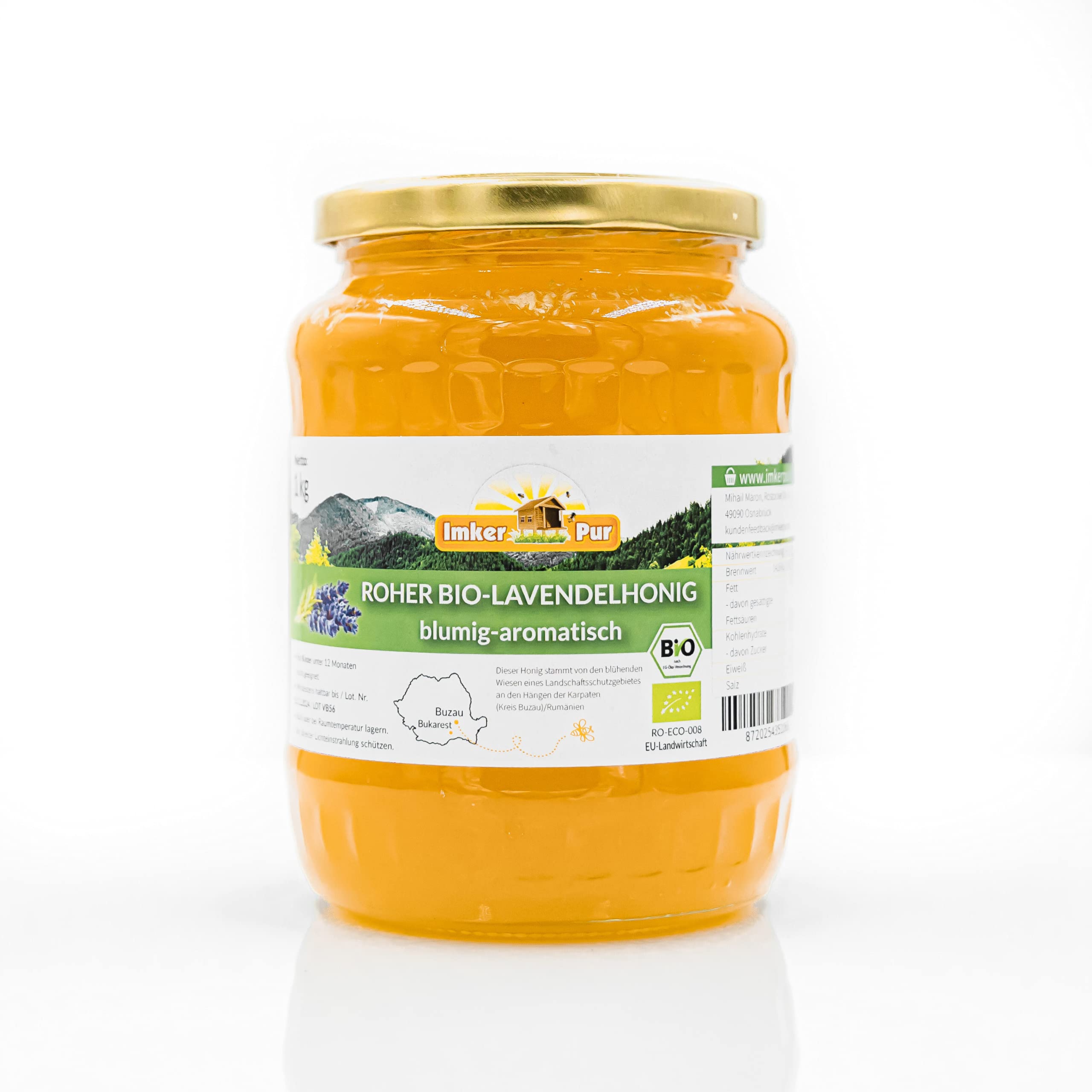 Biologische lavendelhoning (rauw) van ImkerPur, niet gecentrifugeerd of verwarmd, bevat pollen, bijenwas en andere natuurlijke bestanddelen